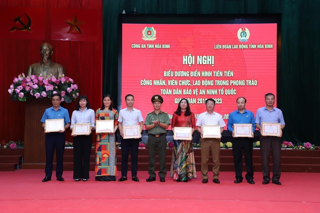 Vừa qua, Công an tỉnh Hòa Bình phối hợp với Liên đoàn Lao động tỉnh Hòa Bình long trọng tổ chức Hội nghị biểu dương điển hình tiên tiến CNVCLĐ trong phong trào “Toàn dân bảo vệ an ninh Tổ quốc, giai đoạn 2018-2023”. Tham dự có lãnh đạo Cục Xây dựng Phong trào và bảo vệ An ninh Tổ quốc – Bộ Công an, lãnh đạo Ban Tuyên giáo Tổng Liên đoàn Lao động Việt Nam, lãnh đạo Công an tỉnh, Liên đoàn Lao động tỉnh, cán bộ chủ chốt Công an tỉnh Hòa Bình, Công đoàn Hòa Bình và các tập thể, cá nhân xuất sắc trong phong trào.