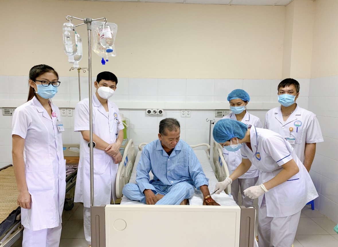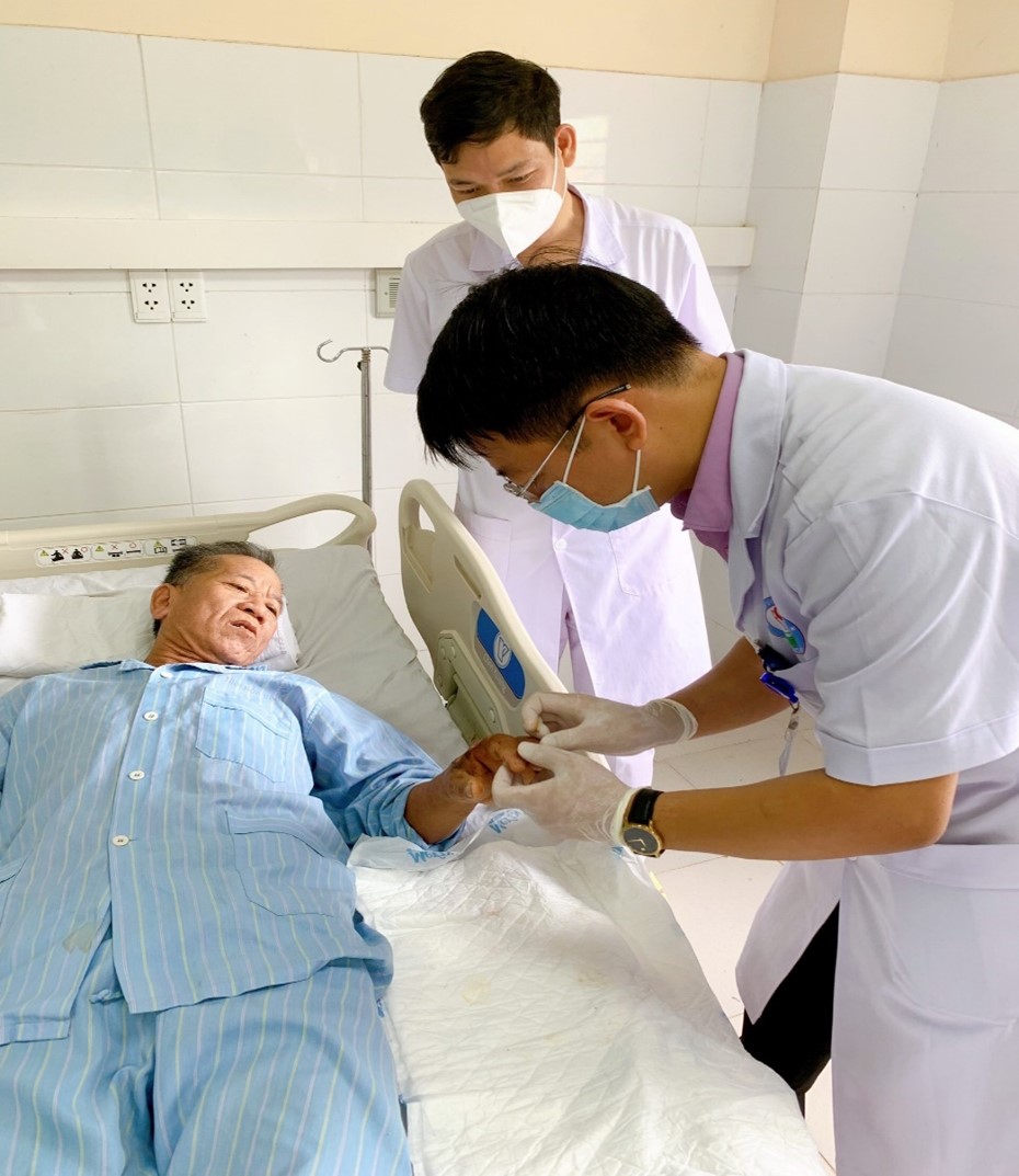 Sau một thời gian điều trị và chăm sóc tích cực, các tạng suy được hồi phục, sức khỏe của bệnh nhân đã khá dần lên. Tuy nhiên, vết thương bàn tay trái của bệnh nhân để lại một diện khuyết da khá lớn, vùng da khuyết lộ rõ các gân duỗi của tay. Bệnh nhân đối diện với rất nhiều nguy cơ nếu không được vá da và phục hồi chức năng bàn tay trái. Các chuyên gia đầu ngành về Hồi sức tích cực-Chống độc, Ngoại Chấn thương-Chỉnh hình, Gây mê hồi sức và Phục hồi chức năng tiếp tục hội chẩn để tiến hành vá da và phục hồi chức năng bàn tay cho người bệnh. Ca phẫu thuật chuyển 1 vạt da vùng đùi trái lên vá vào vùng da khuyết ở bàn tay trái cho bệnh nhân đã thành công tốt đẹp. Một tuần theo dõi sau vá da, bàn tay trái của bệnh nhân hồi phục rất tốt. Bệnh nhân được xuất viện trong niềm vui chung của tất cả mọi người.