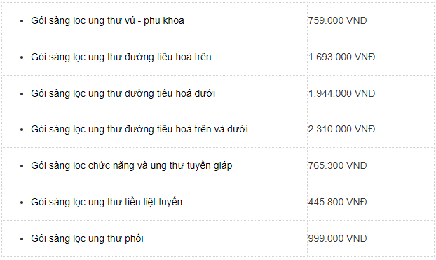 • Các loại ung thư phổ biến được phát hiện sớm tại đây bao gồm: ung thư cổ tử cung, ung thư vú, ung thư đại tràng, và ung thư gan.