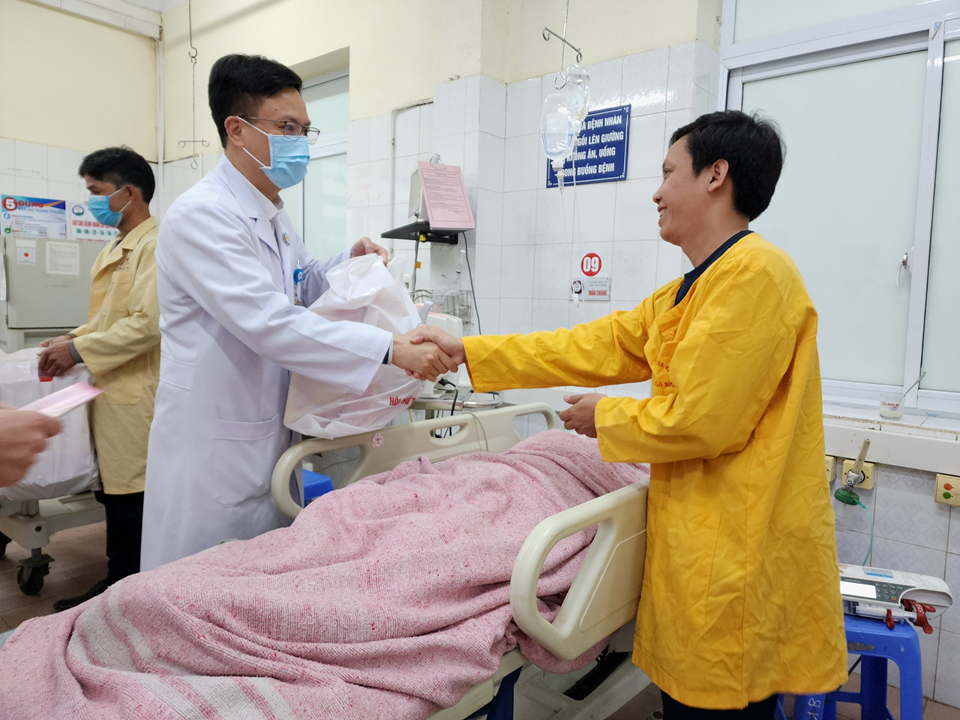 TS.BS Nguyễn Hoàng Diệu, Giám đốc bệnh viện cùng các đồng chí trong Ban Giám đốc Bệnh viện đến thăm hỏi, tặng quà đầu xuân các bệnh nhân
