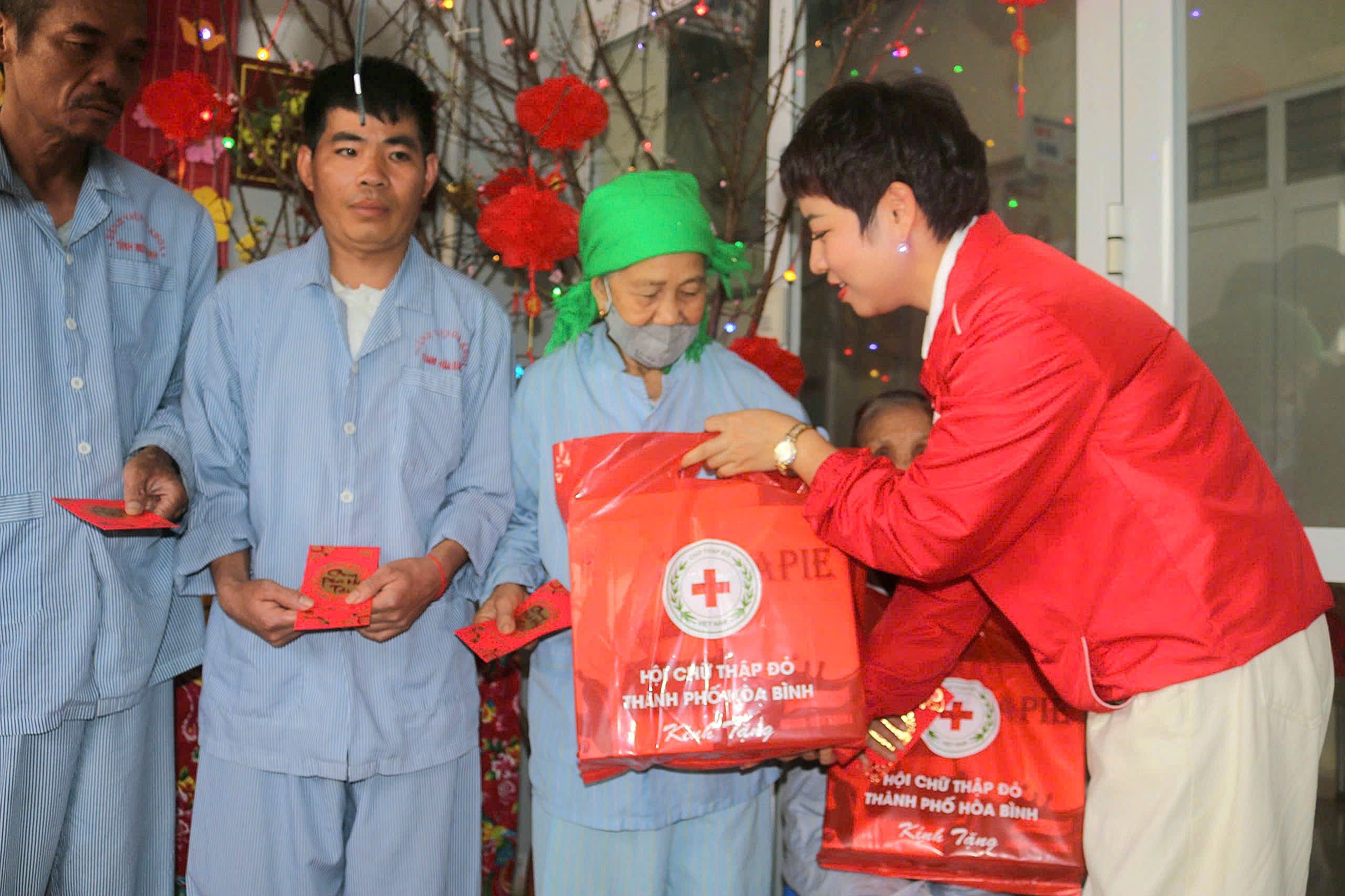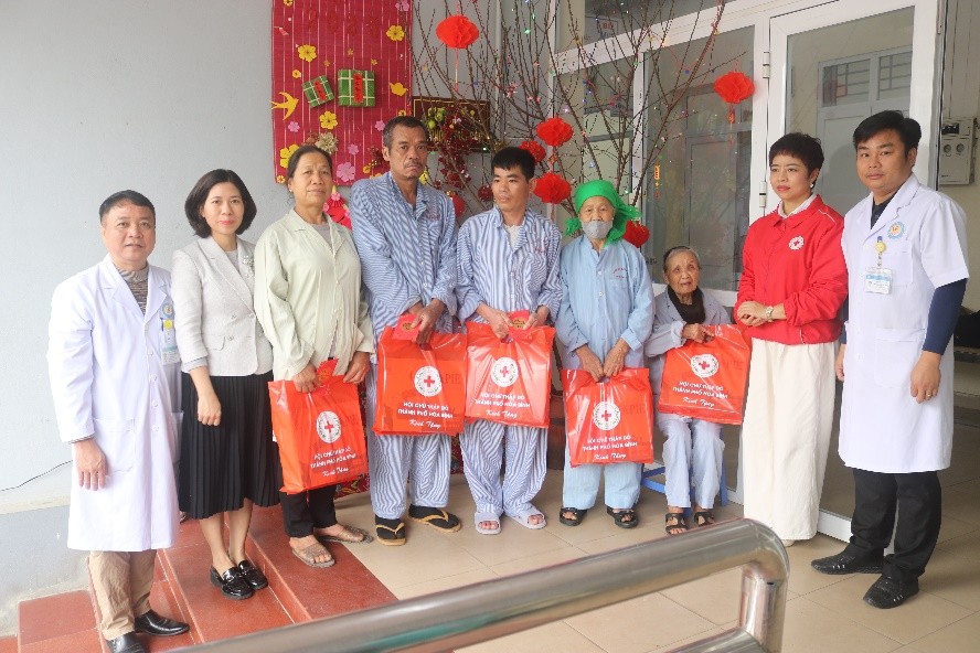 Ngày 24/01 (tức 25 tháng Chạp), Hội Chữ thập đỏ thành phố phối hợp với Bệnh viện Đa khoa tỉnh Hòa Bình tặng quà tết Nguyên đán Xuân Ất tỵ 2025 cho bệnh nhân có hoàn cảnh khó khăn đang điều trị nội trú tại Bệnh viện. Tham dự có BS.CKII Nguyễn Quốc Phương, Phó Giám đốc Bệnh viện; bà Trần Thị Hoa, Chủ tịch Hội Chữ thập đỏ thành phố cùng các thành viên đoàn.