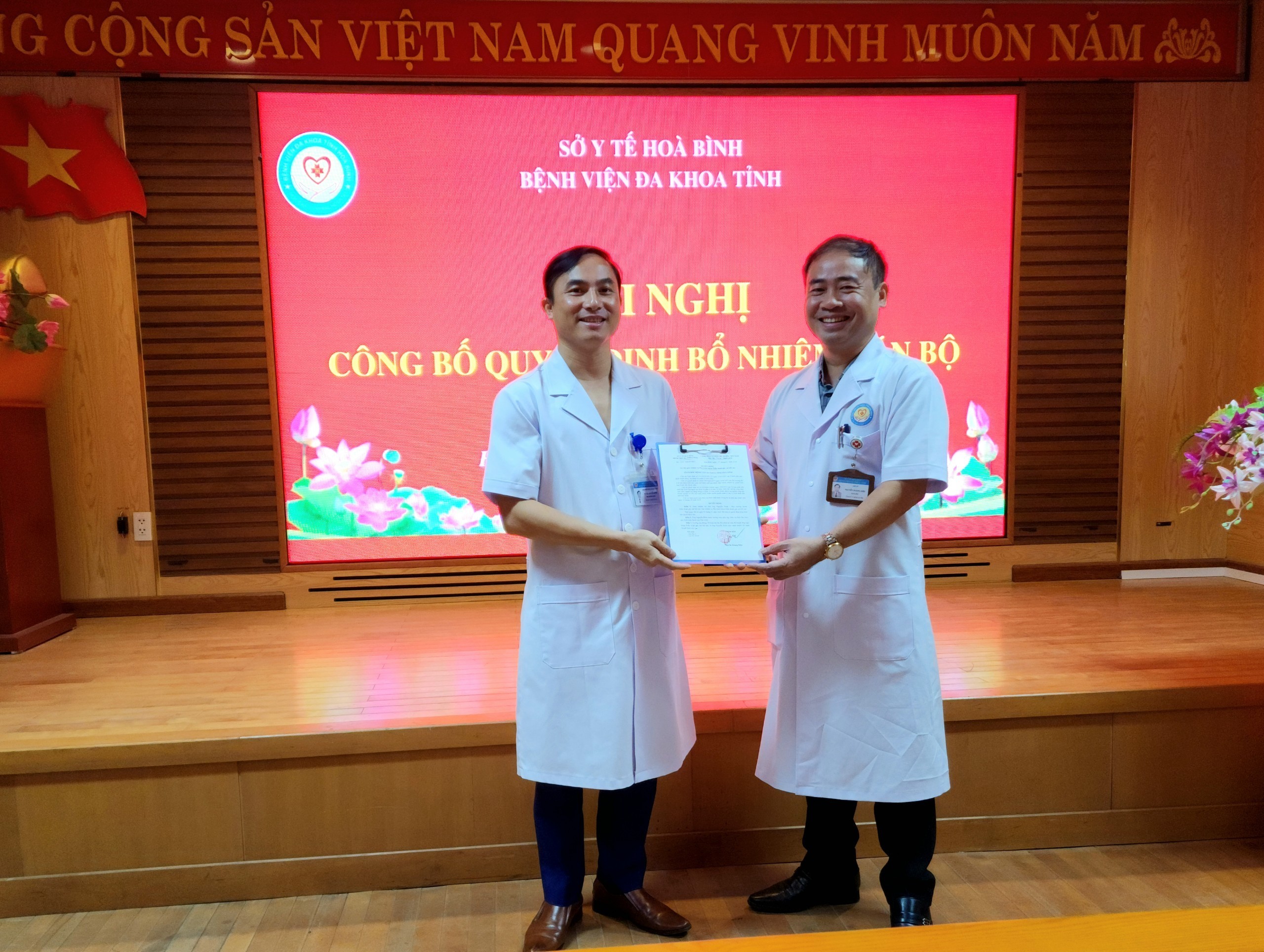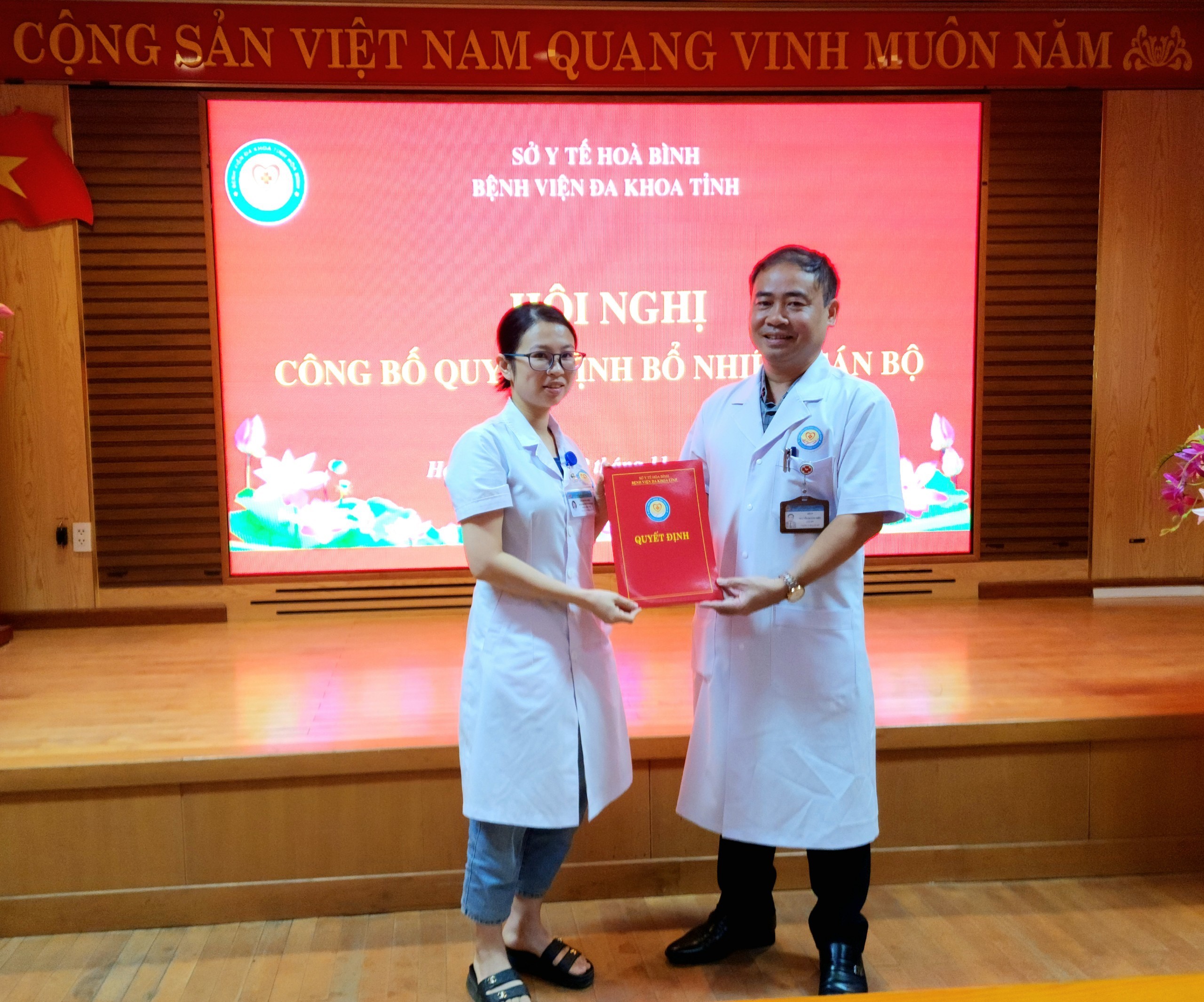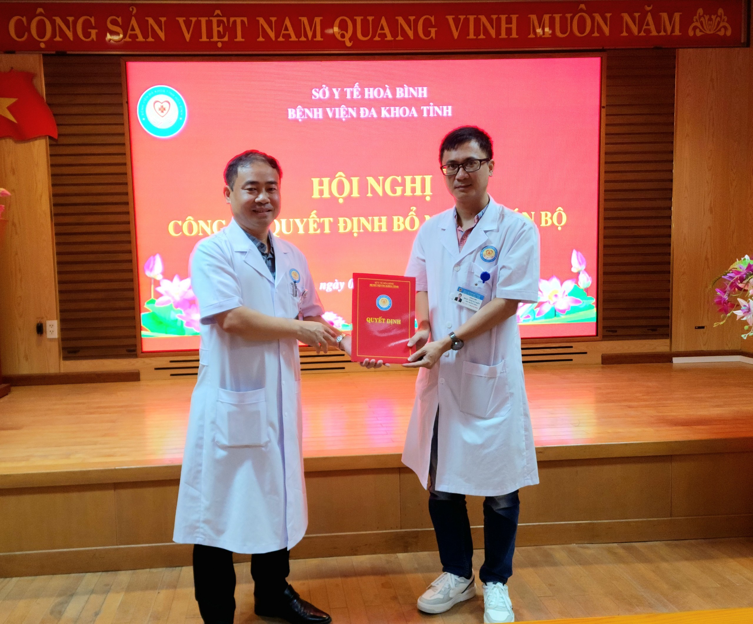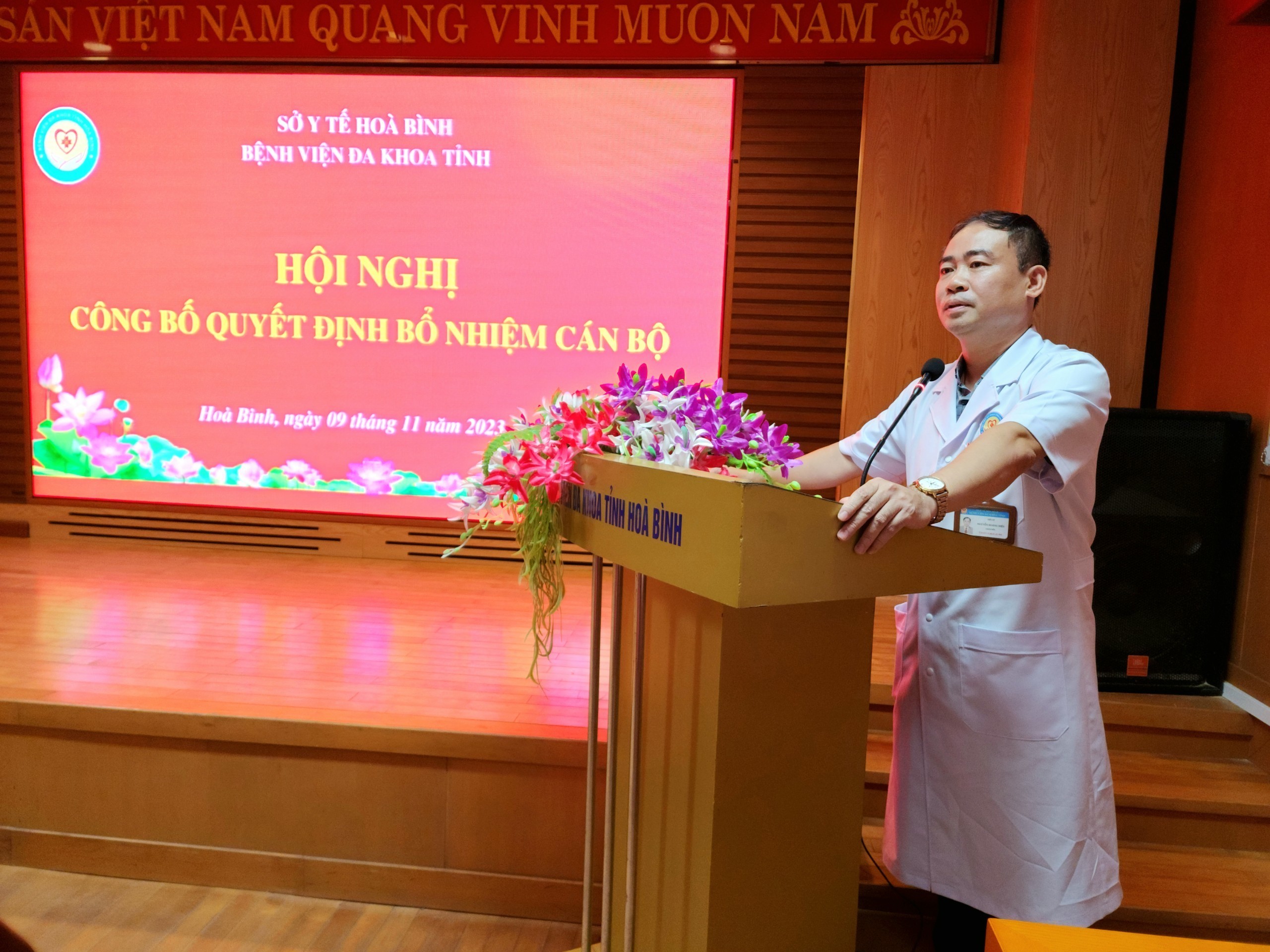 Ngày 11/9/2023, Bệnh viện Đa khoa tỉnh Hoà Bình long trọng tổ chức Hội nghị công bố các Quyết định bổ nhiệm cán bộ tháng 11/2023. TS.BS Nguyễn Hoàng Diệu, Bí thư Đảng uỷ, Giám đốc Bệnh dự và chủ trì Hội nghị.