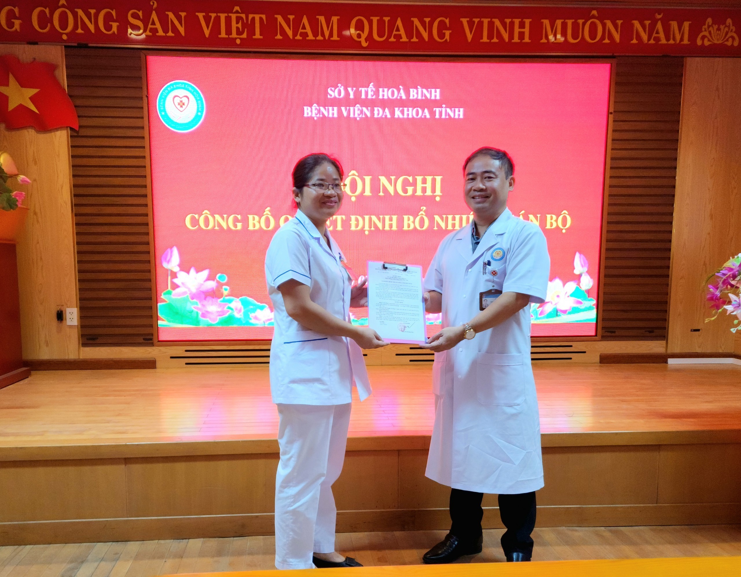 Tại Hội nghị, Ban tổ chức đã công bố 8 Quyết định bổ nhiệm cán bộ. Theo đó, bổ nhiệm có thời hạn 5 năm đối với bà Quách Thị Dung giữ chức vụ Trưởng khoa Thận Nhân tạo và ông Trần Quốc Toản giữ chức vụ Điều dưỡng trưởng khoa Y, học cổ truyền; bổ nhiệm lại có thời hạn 5 năm đối với các ông, bà: bà Nguyễn Thị Thanh Hảo giữ chức vụ Phó Trưởng khoa Nội Tổng hợp, ông Ninh Duy Kiên giữ chức vụ Phó Trưởng khoa Nhi, bà Nguyễn Thị Kim Huệ giữ chức vụ Phó Trưởng khoa Truyền nhiễm, ông Phạm Văn Tuân giữ chức vụ Điều dưỡng trưởng khoa Chấn thương chỉnh hình; giao nhiệm vụ cho ông Nguyễn Đính, Phó Trưởng khoa Phẫu thuật, gây mê hồi sức làm nhiệm vụ Phụ trách khoa Phẫu thuật, gây mê hồi sức; điều động và giao nhiệm vụ đối với bà Bùi Thị Quỳnh, Điều dưỡng khoa Truyền nhiễm đến làm nhiệm vụ Điều dưỡng trưởng khoa Nội hô hấp - Lao.