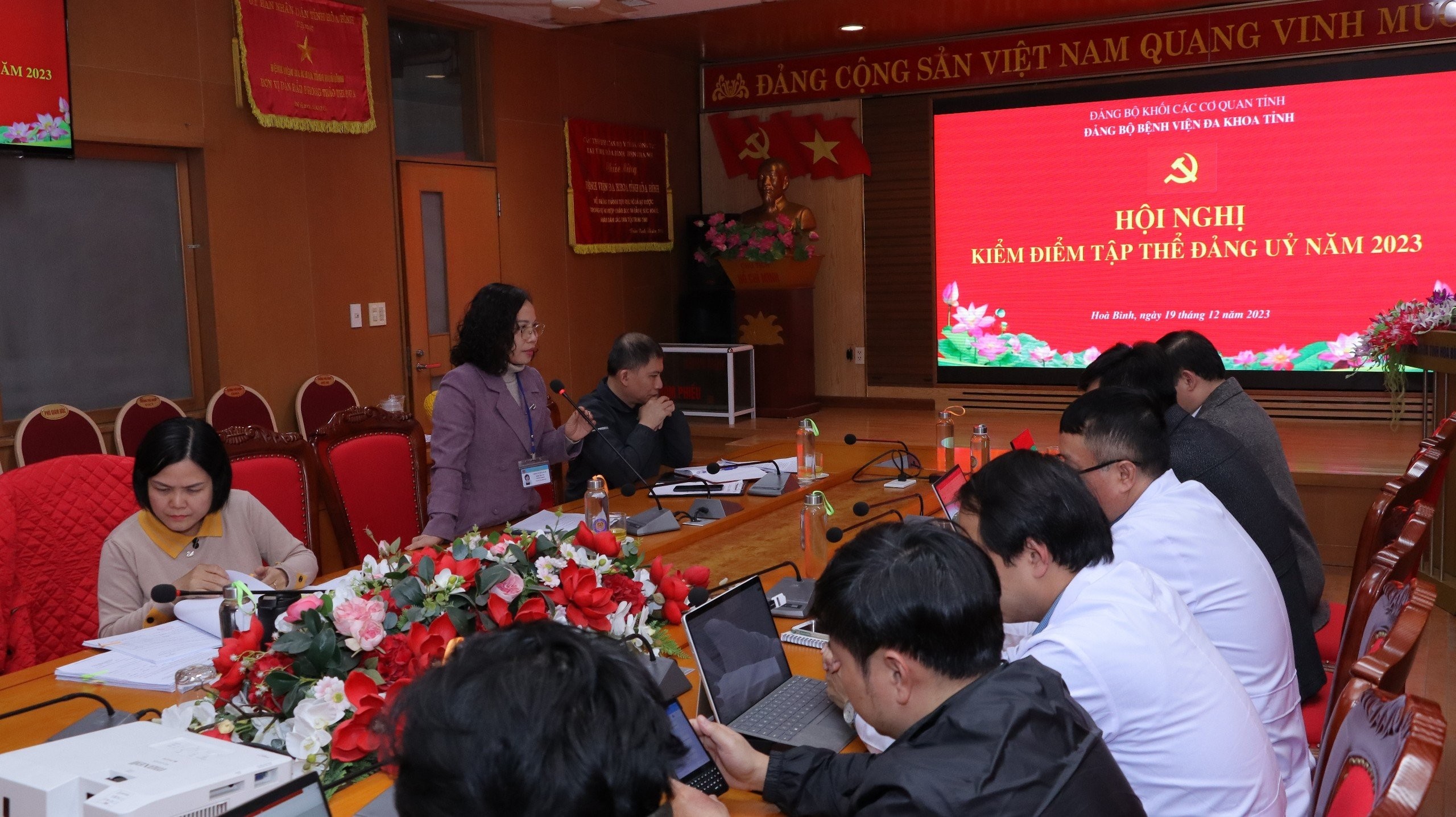 Tại Hội nghị, TS.BS Trương Như Hiển, Phó Bí thư Đảng uỷ, Phó Giám đốc Bệnh viện đã trình bày báo cáo kiểm điểm tập thể Đảng uỷ Bệnh viện Đa khoa tỉnh năm 2023. Theo đó, trong năm 2023, Đảng uỷ, Ban Giám đốc Bệnh viện đã lãnh đạo, chỉ đạo và tổ chức thực hiện nghiêm túc chủ trương, đường lối của Đảng, chính sách, pháp luật của Nhà nước; nghiêm túc triển khai, quán triệt, học tập và tổ chức thực hiện các Nghị Quyết của Đảng, pháp luật của Nhà nước đến đội ngũ cán bộ, đảng viên và người lao động.