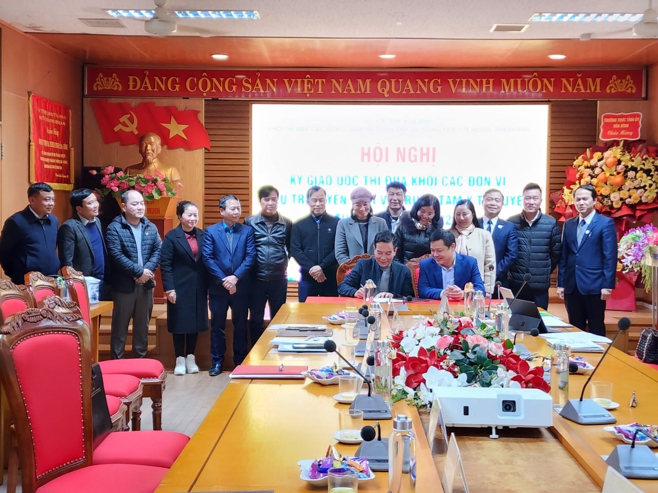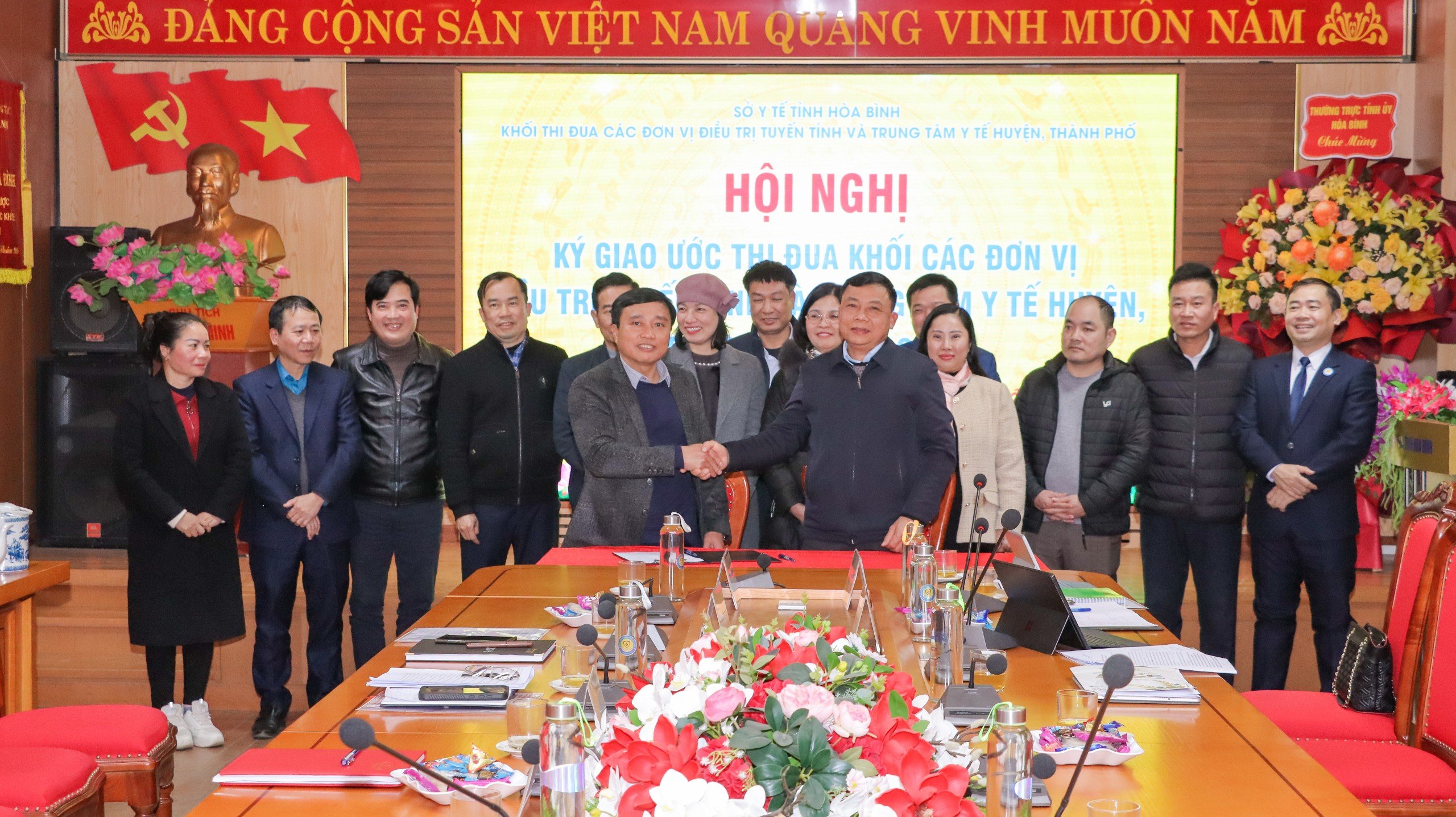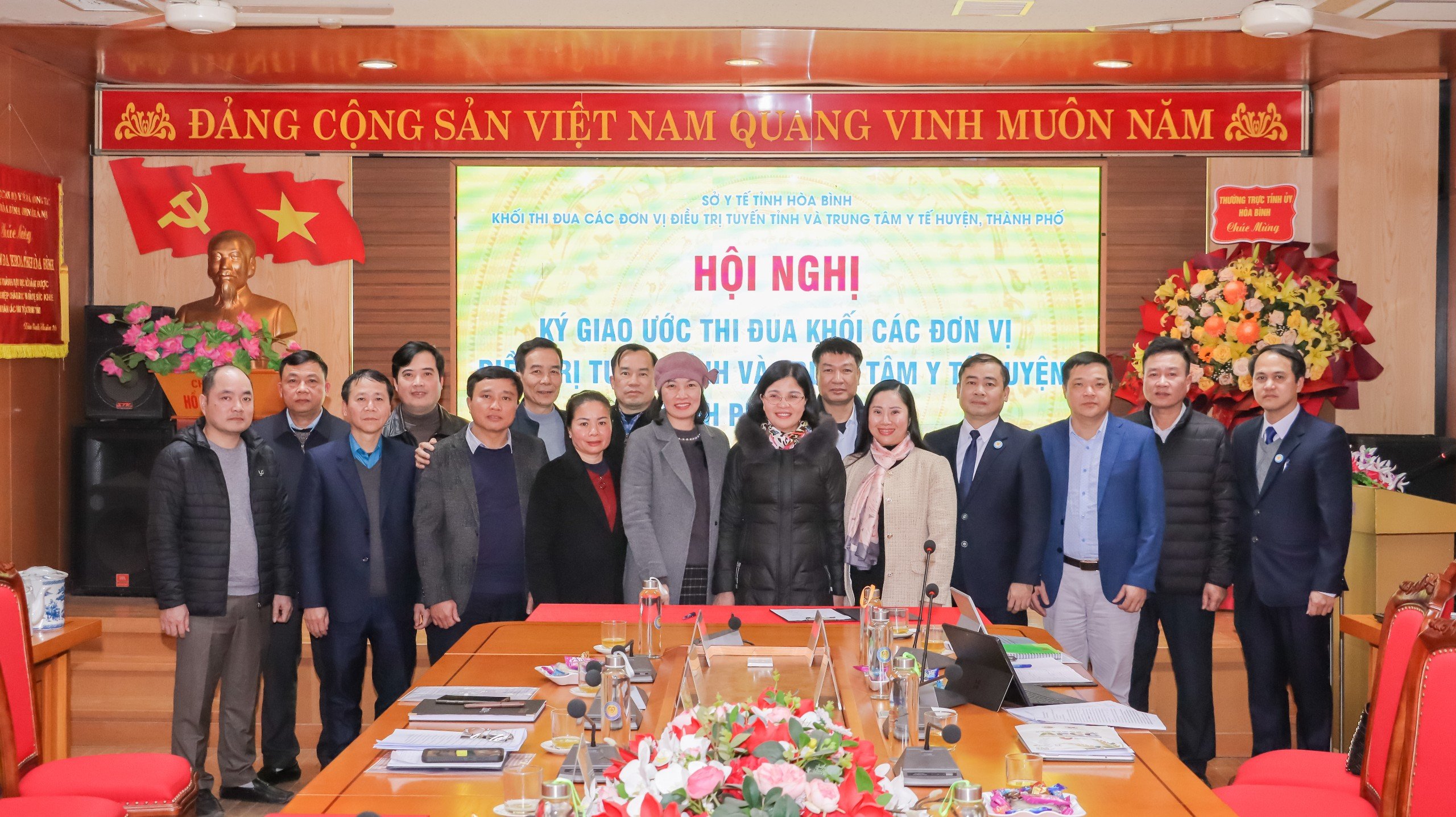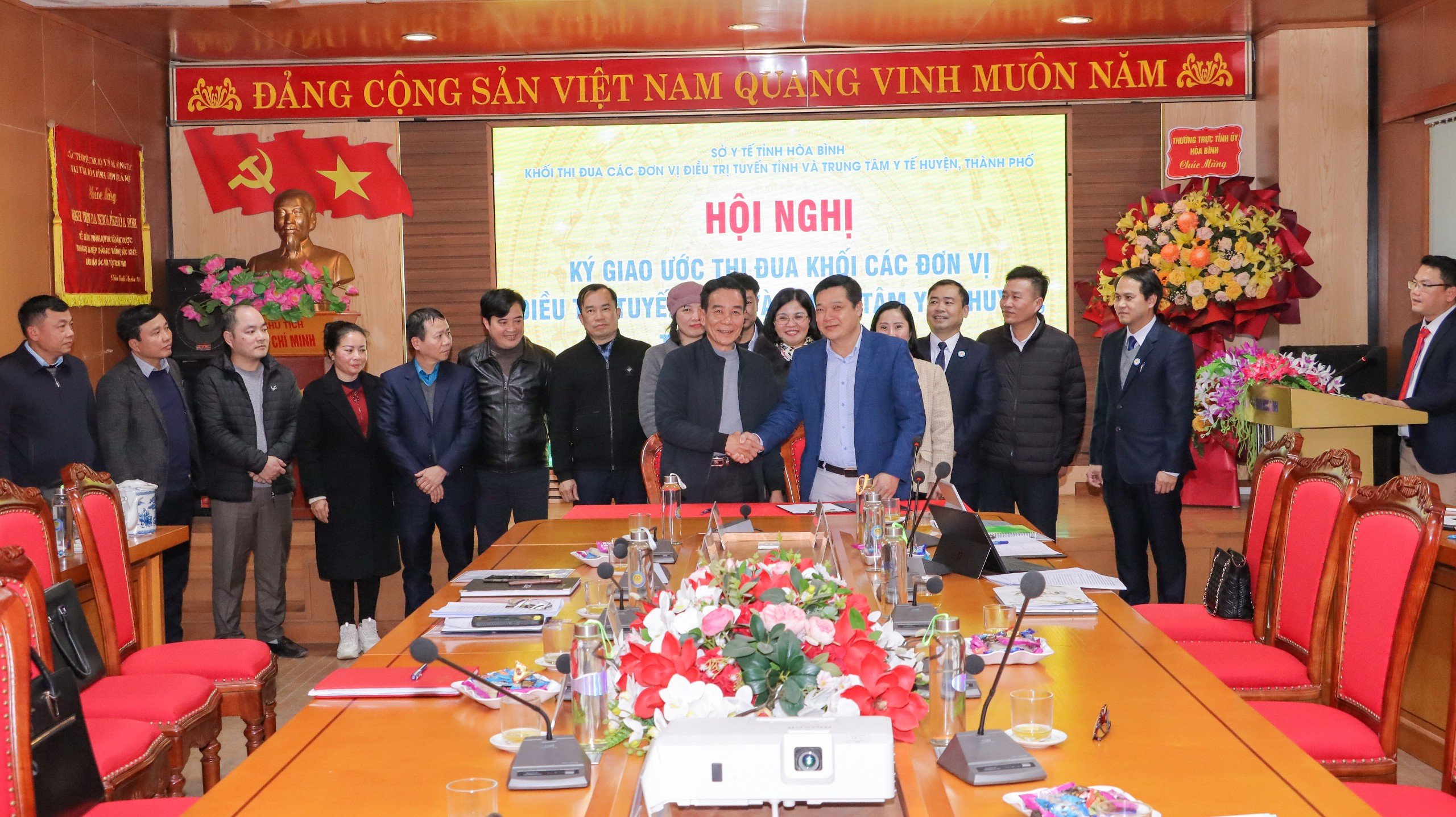 Ngày 01/3/2024, tại Bệnh viện Đa khoa tỉnh Hoà Bình, Khối thi đua long trọng tổ chức Hội nghị Ký giao ước thi đua giữa các đơn vị điều trị tuyến tỉnh và trung tâm y tế huyện, thành phố. Đồng chí Bùi Thu Hằng, Tỉnh uỷ viên, Giám đốc Sở dự và chỉ đạo Hội nghị.