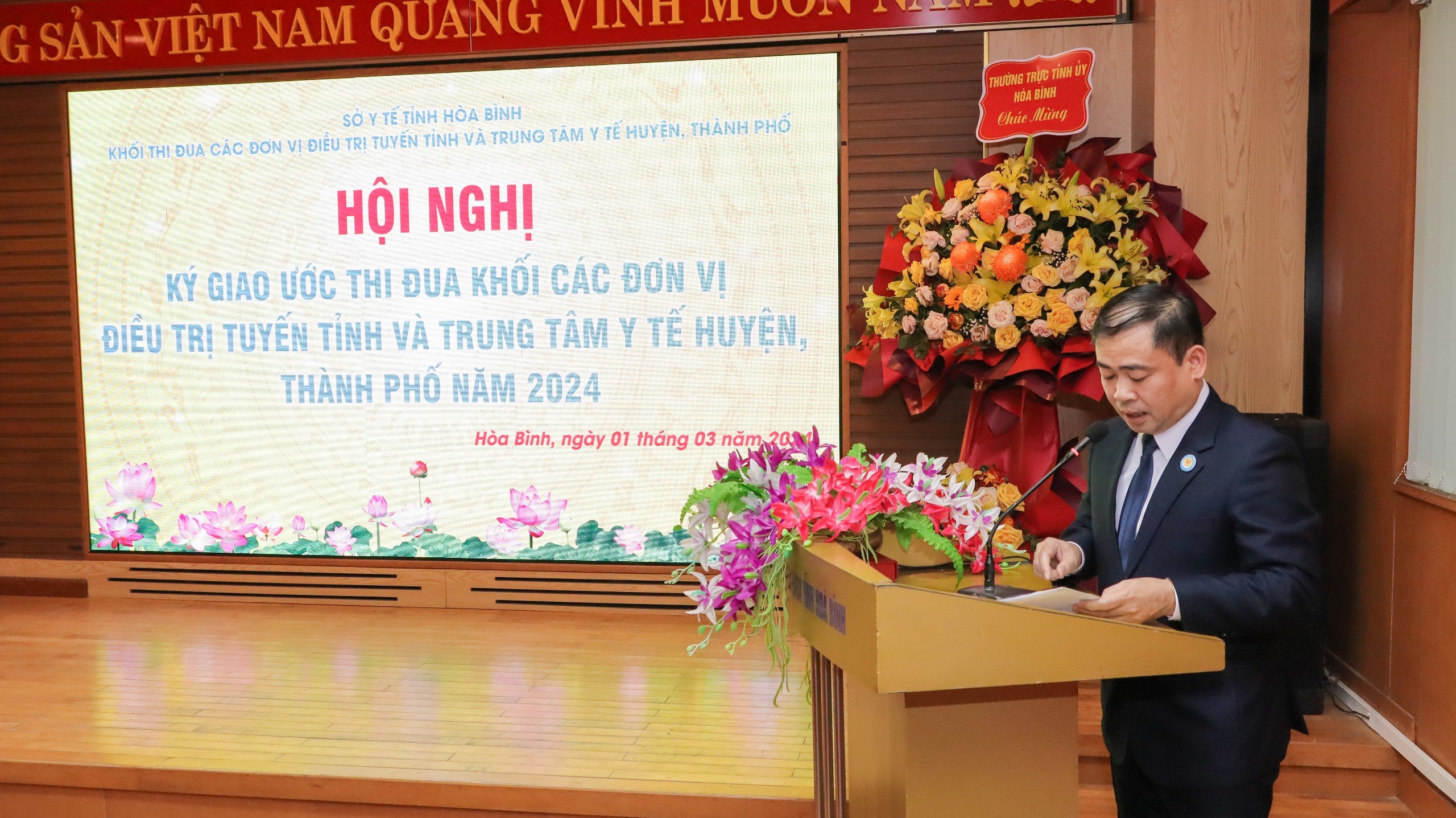 Trong khuôn khổ Hội nghị, dưới sự chủ trì của đồng chí Tiến sỹ- Bác sỹ Nguyễn Hoàng Diệu Giám đốc Bệnh viện Đa khoa tỉnh Hoà Bình trưởng khối Điều trị, các đại biểu đã thảo luận góp ý vào dự thảo giao ước thi đua nhằm hoàn thiện và phù hợp tình hình thực tiễn tại các đơn vị. Đồng thời, được nghe phát động phong trào thi đua năm 2024 trong toàn khối điều trị với quyết tâm hoàn thành xuất sắc nhiệm vụ được giao, góp phần cùng toàn ngành nâng cao chất lượng chăm sóc và bảo vệ sức khỏe nhân dân.