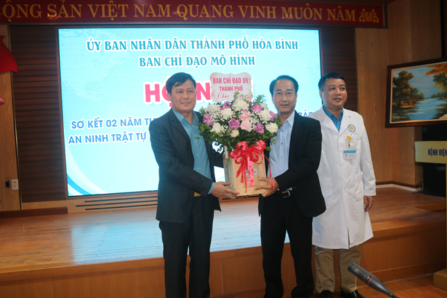 Ngày 21/10, tại Bệnh viện Đa khoa tỉnh Hòa Bình, Ban chỉ đạo mô hình “Liên kết đảm bảo an ninh, trật tự tại Bệnh viện Đa khoa tỉnh Hòa Bình” tổ chức Hội nghị sơ kết 2 năm công tác đảm bảo an ninh trật tự tại khu vực Bệnh viện và phương hướng nhiệm vụ trong thời gian tiếp theo. Tham dự Hội nghị có các đồng chí: Thiếu tá Nguyễn Thị Phượng, Phó trưởng phòng PV 05 công an tỉnh Hòa Bình, thành viên Ban chỉ đạo 09 tỉnh; Đ/c Nguyễn Hữu Luyện, Phó Chủ tịch UBND thành phố, Phó Ban chỉ đạo 09 thành phố; Thượng tá Vũ Anh Tài, Phó trưởng công an thành phố, Ban chỉ đạo 09 phường Đồng Tiến; Đ/c Nguyễn An Trường, Phó Giám đốc Sở Y tế, Đ/c Nguyễn Quốc Phương, Phó Giám đốc Bệnh viện Đa khoa tỉnh Hòa Bình, cùng đại diện các tổ dân phố số 10, số 11, phường Đồng Tiến, thành phố Hòa Bình.