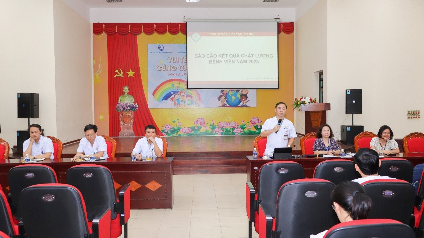 Tại Hội nghị, đại diện phòng Quản lý chất lượng Bệnh viện đã thông báo kết quả kiểm tra Bệnh viện năm 2023. Theo đó, một số nội dung nổi bật như quản lý vật tư, trang thiết bị y tế, Dược, Tài chính Bệnh viện, các chế độ, chính sách đối với viên chức và người lao động, cơ sở hạ tầng, đào tạo...được đề cập và nhấn mạnh.