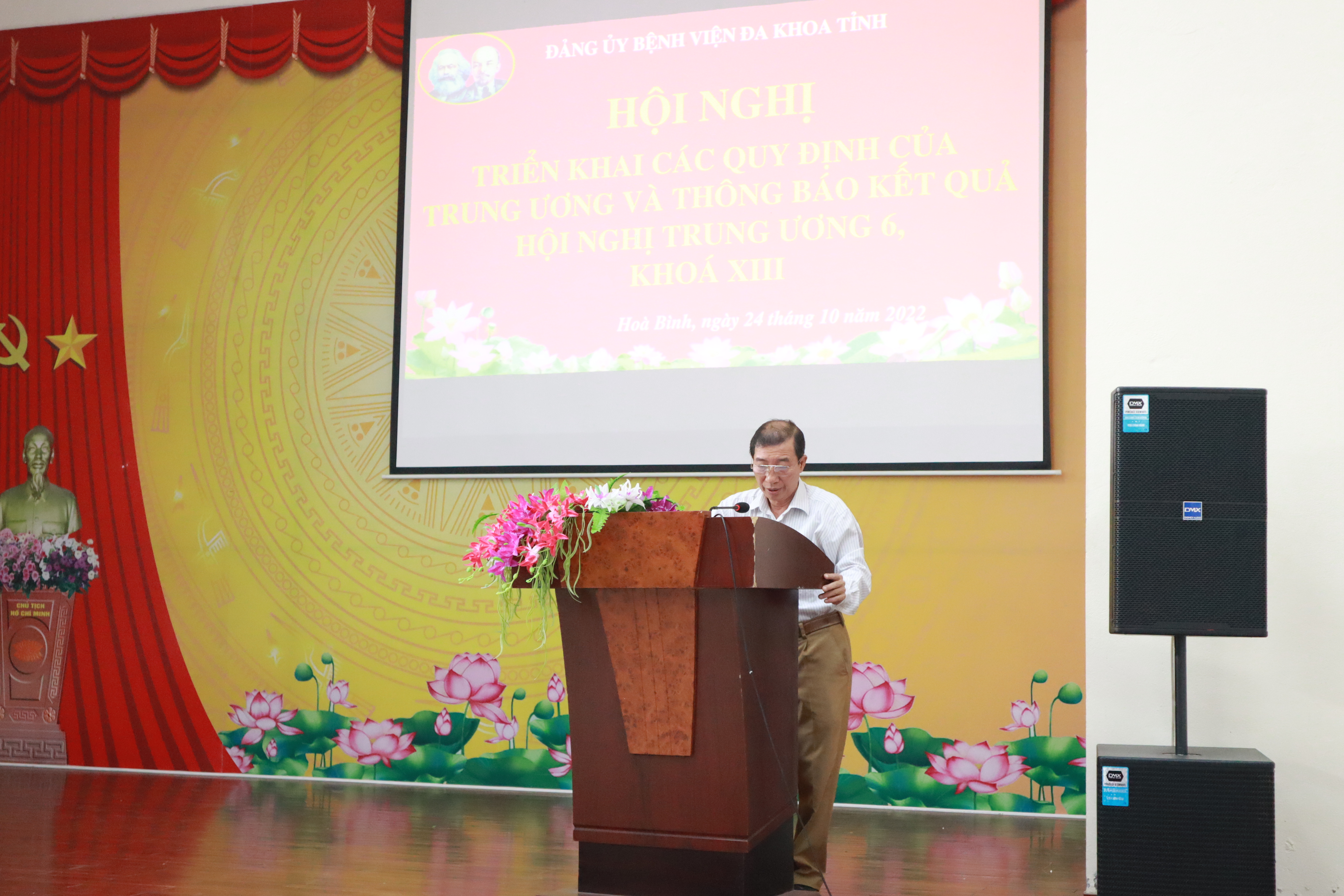 Ngày 24/10, Đảng uỷ Bệnh viện Đa khoa tỉnh Hoà Bình tổ chức Hội nghị triển khai các quy định của Trung ương và thông báo kết quả Hội nghị Trung ương 6, khoá VIII.