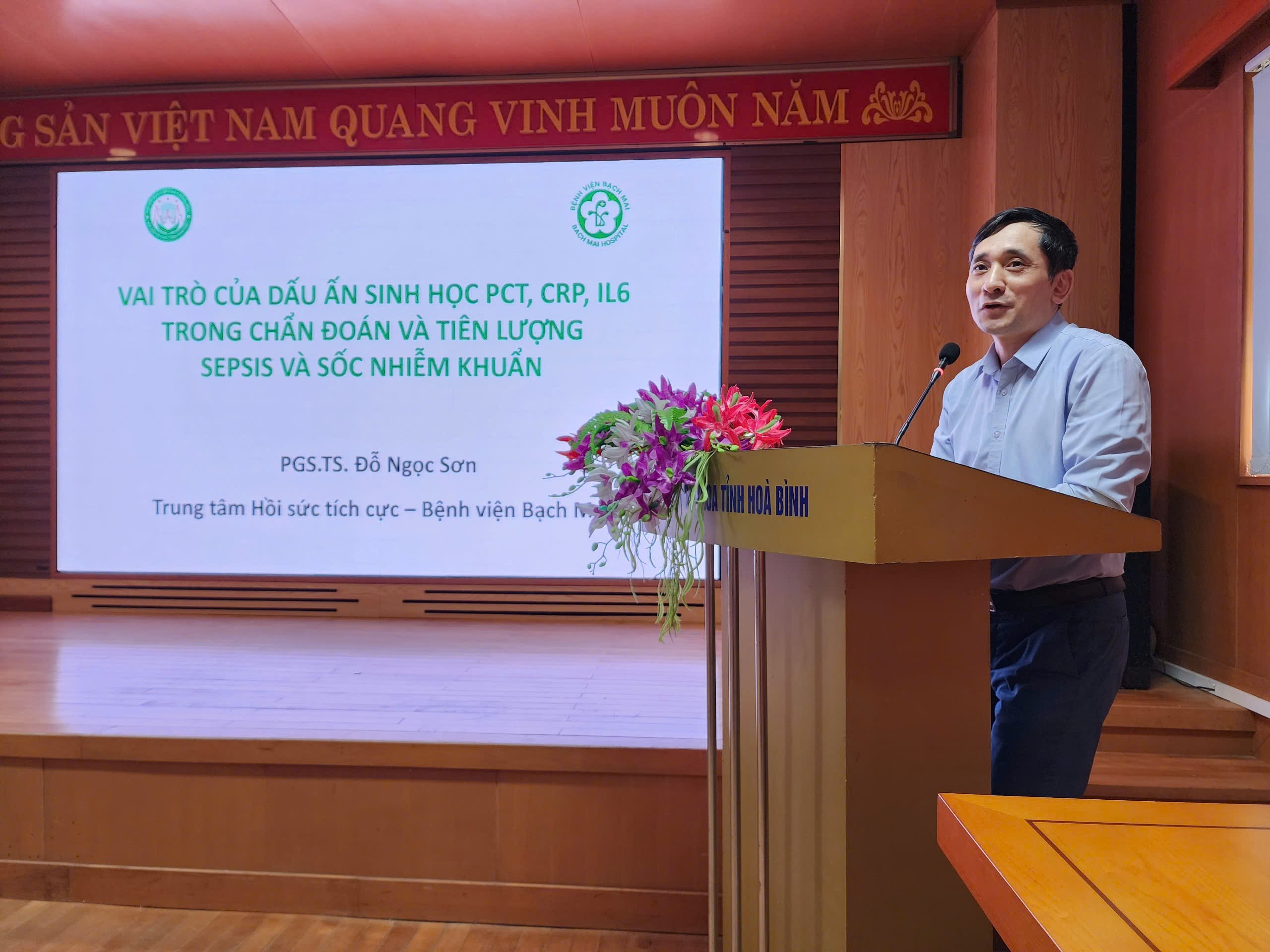 Chiều 28/8, Bệnh viện Đa khoa tỉnh Hoà Bình tổ chức Hội thảo tập huấn cập nhật ứng dụng xét nghiệm trong thực hành lâm sàng. Hội thảo có sự tham gia của chuyên gia đầu ngành đến từ Bệnh viện Bạch Mai gồm: PGS.TS Đỗ Ngọc Sơn, Giám đốc trung tâm Hồi sức tích cực, TS.BS Đào Huyền Quyên, Trưởng khoa Hoá sinh.