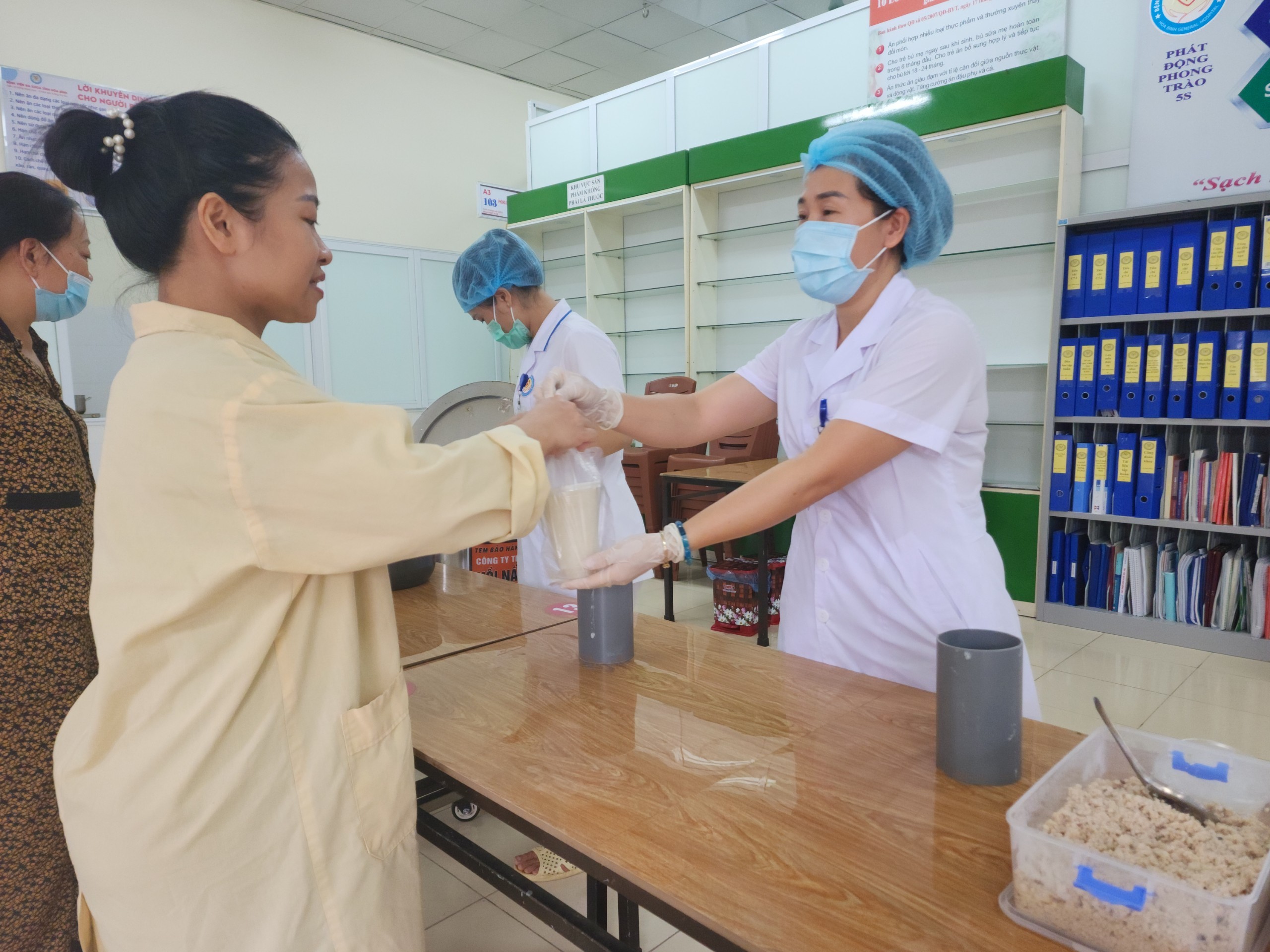 Chiều 14/6, được sự nhất trí của Ban Giám đốc Bệnh viện Đa khoa tỉnh Hoà Bình, Khoa Dinh dưỡng tổ chức chương trình thiện nguyện, phát cháo miễn phí tới người bệnh đang điều trị nội trú tại Bệnh viện.