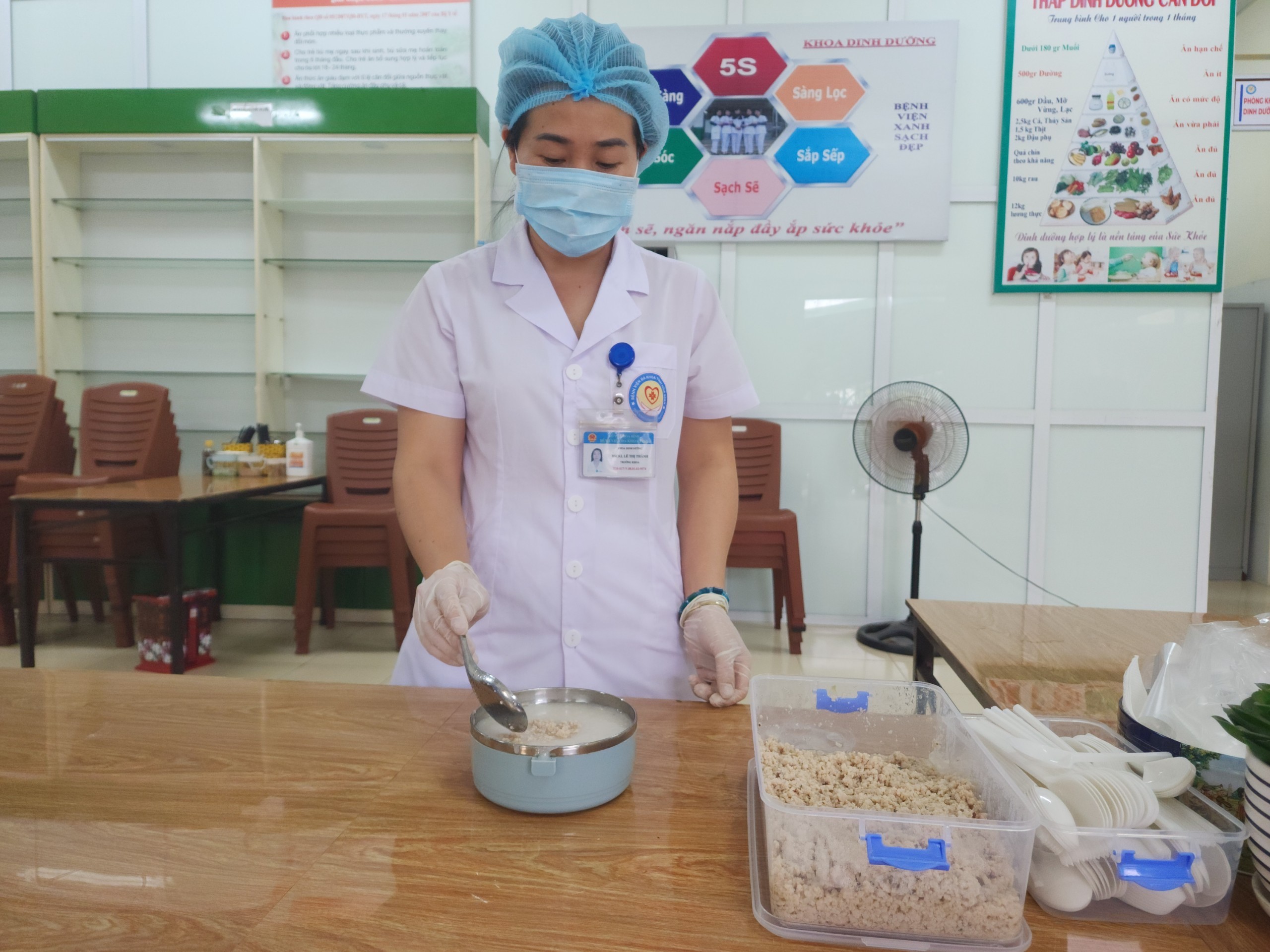 Những xuất cháo thơm ngon ăn cùng thịt băm được chính tay các bác sĩ và điều dưỡng khoa Dinh dưỡng chuẩn bị
