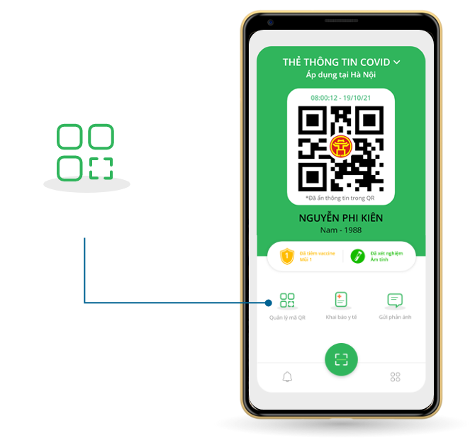 Mỗi người dân được cấp 1 mã QR cá nhân duy nhất, khi đến cơ quan và các địa điểm công cộng: Siêu thị, Trường học, Bệnh viện… phải quét mã QR để xác nhận thời gian, địa điểm đến, phục vụ cho công tác phòng chống dịch bệnh.
