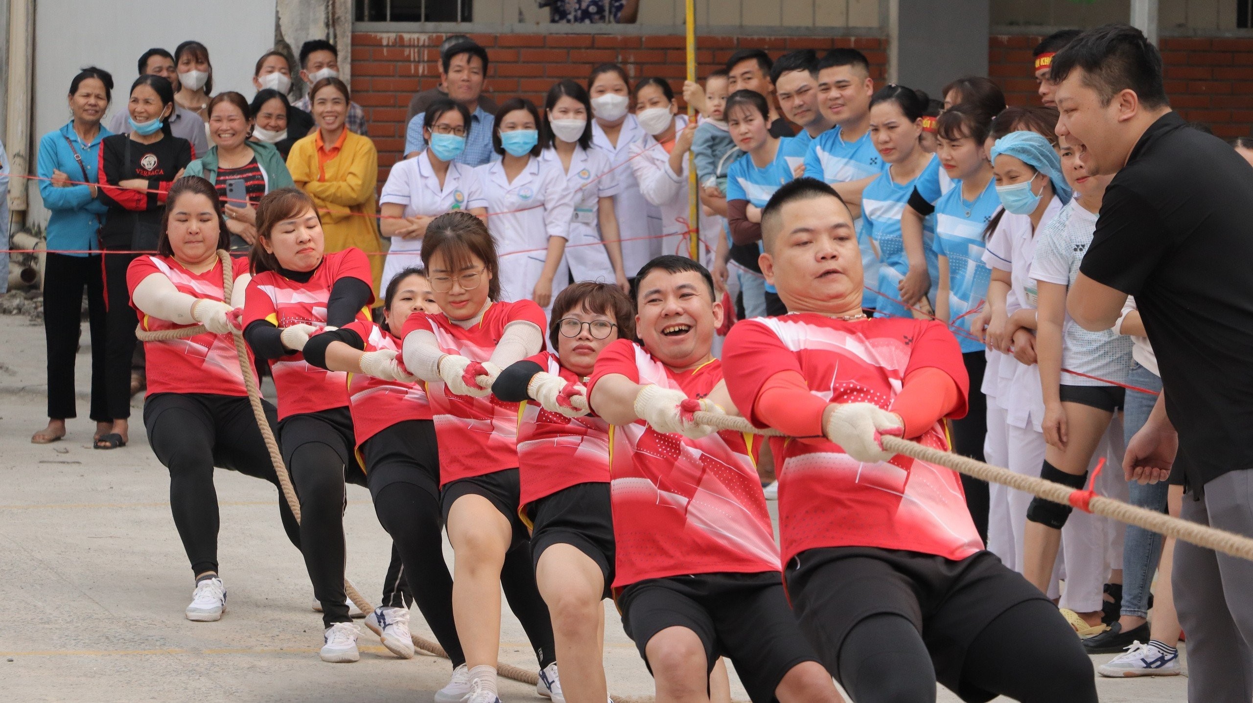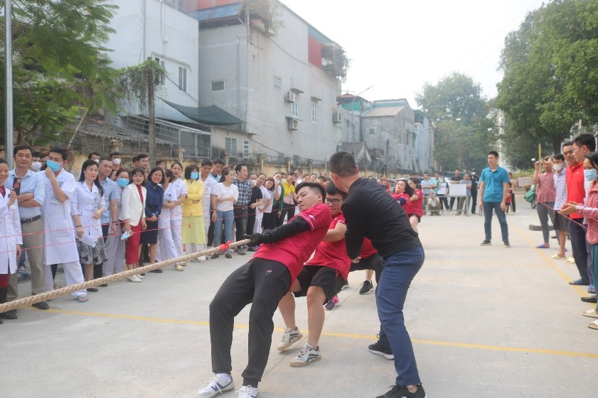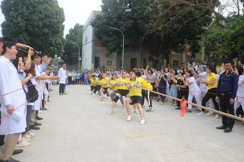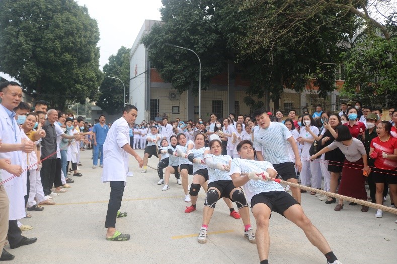 Ngày 6/3, tại sân ngoài trời trước cửa toà nhà Ung bướu B5 đã diễn ra các trận vòng loại môn dung kéo co trong khuôn khổ Giải Bóng chuyền hơi, kéo co Bệnh viện Đa khoa tỉnh năm 2024.