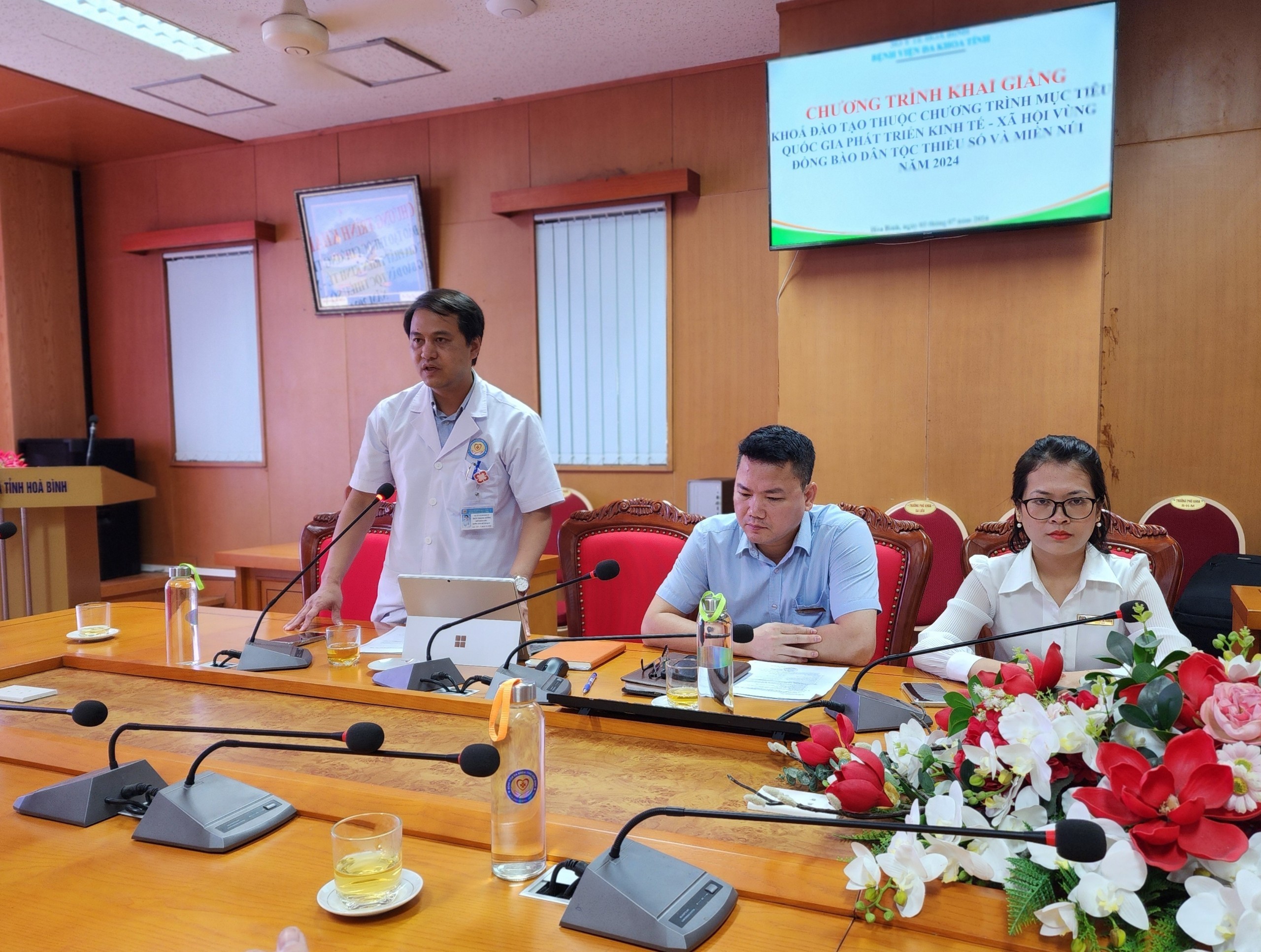 Ngày 3/7, Bệnh viện Đa khoa tỉnh Hoà Bình tổ chức khai giảng khoá đào tạo thuộc chương trình mục tiêu Quốc gia phát triển kinh tế xã hội vùng đồng bào dân tộc thiểu số và miền núi năm 2024. Tham dự có BS.CKII Trần Hoàng Dương, Phó Giám đốc Bệnh viện cùng 20 học viên là cán bộ y tế đến từ các xã vùng III.