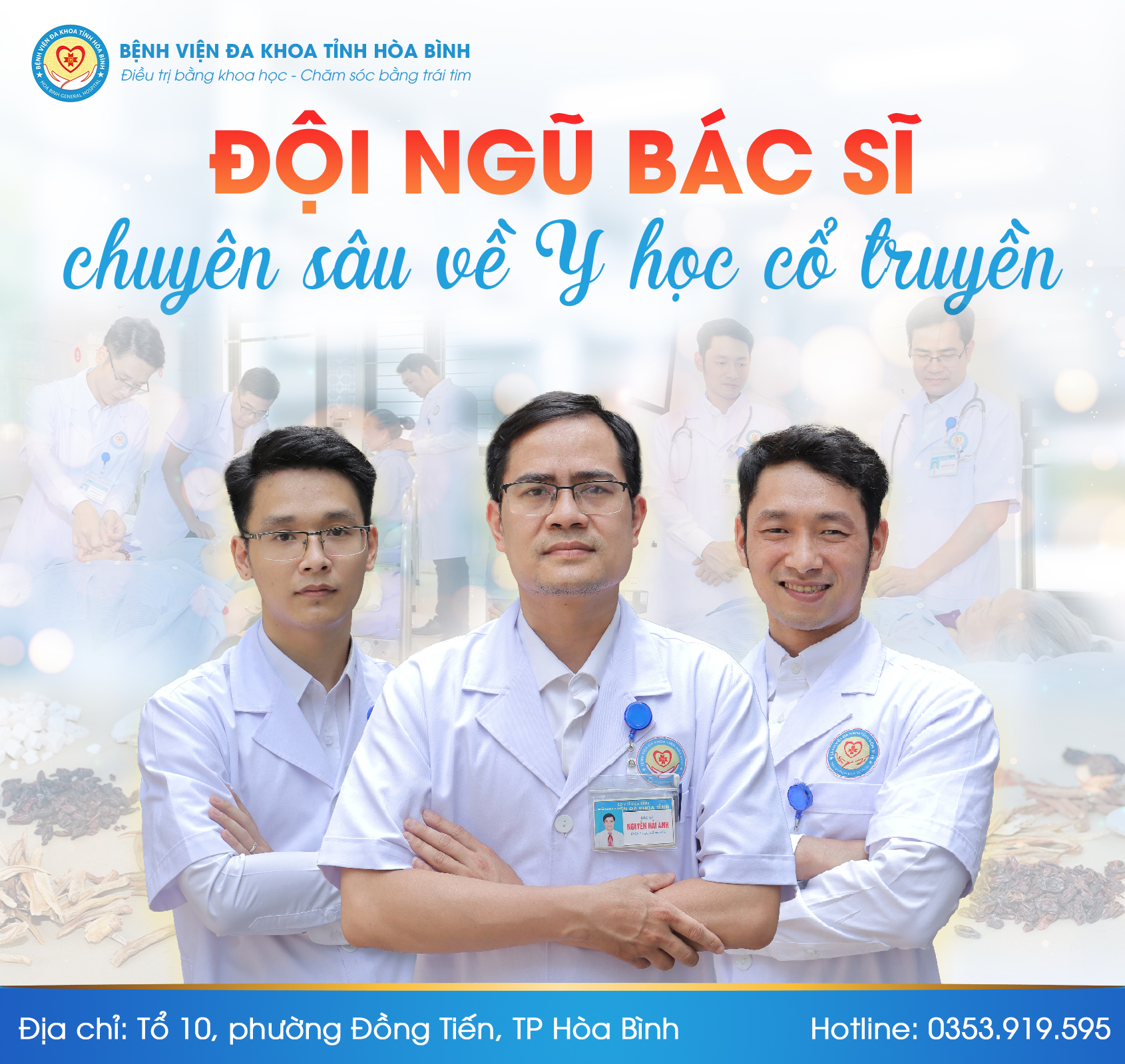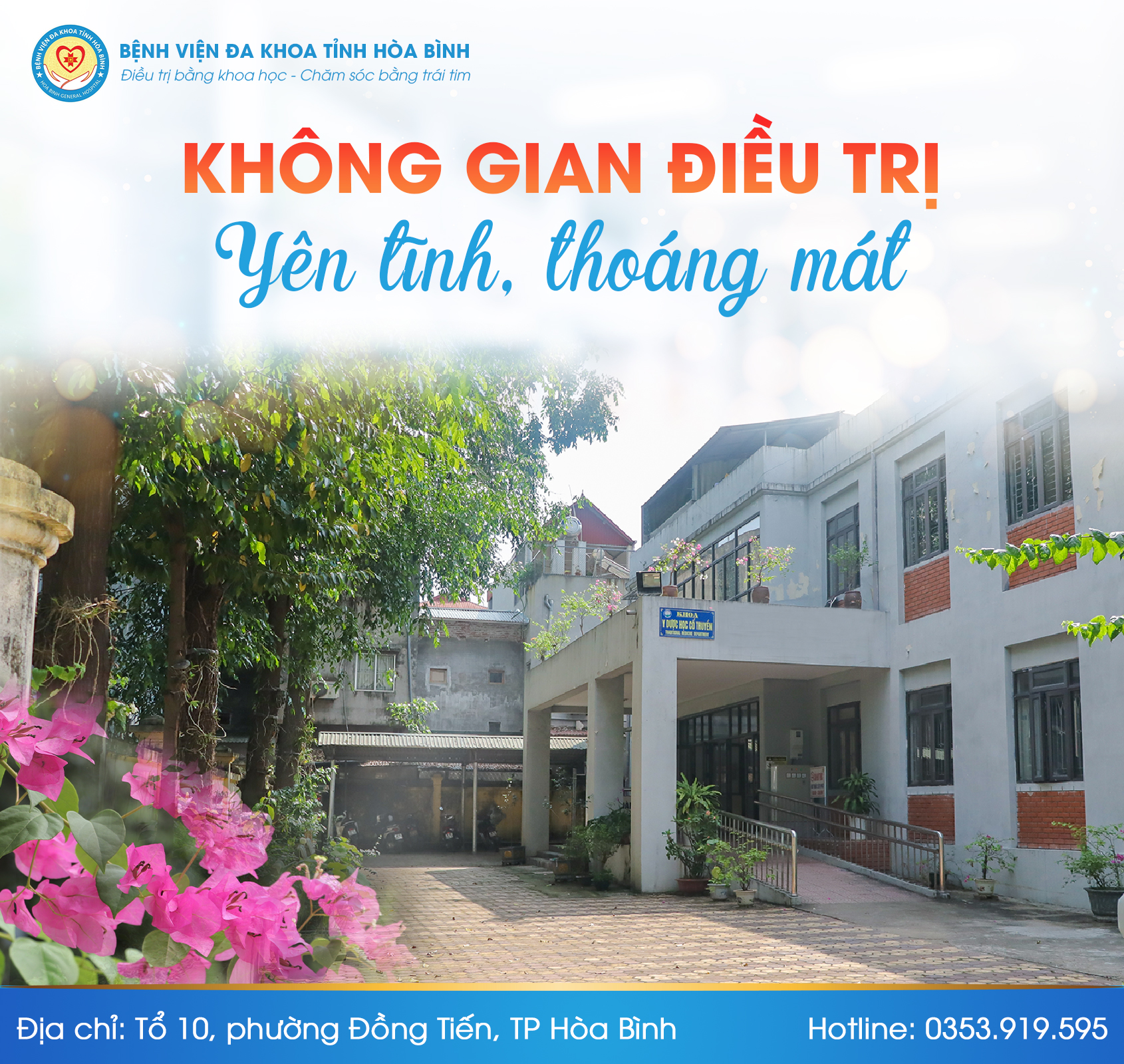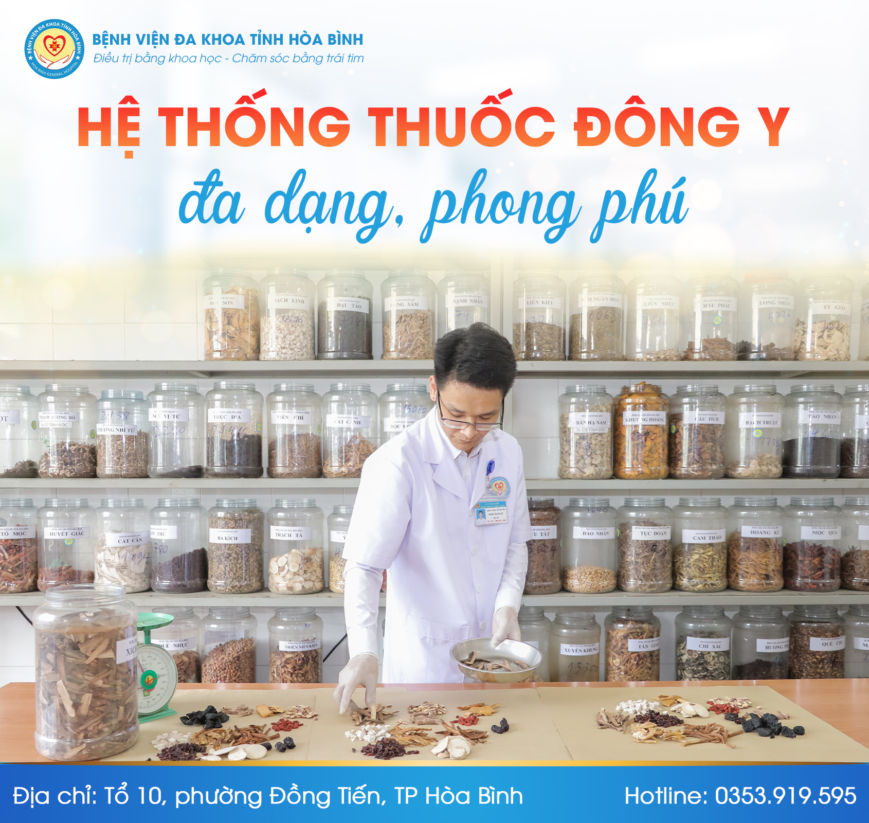 Khoa Y, Dược học cổ truyền, BVĐK tỉnh Hòa Bình được bố trí ở một tòa nhà riêng biệt, có sân phía trước rộng, thoáng mát nhiều cây xanh, hệ thống buồng bệnh, buồng thủ thuật rộng rãi, tạo không gian yên tĩnh, thư thái cho người bệnh. Đội ngũ Bác sĩ, điều dưỡng luôn tận tâm, tận lực chăm sóc và điều trị người bệnh với phương châm hướng tới sự hài lòng của người bệnh.