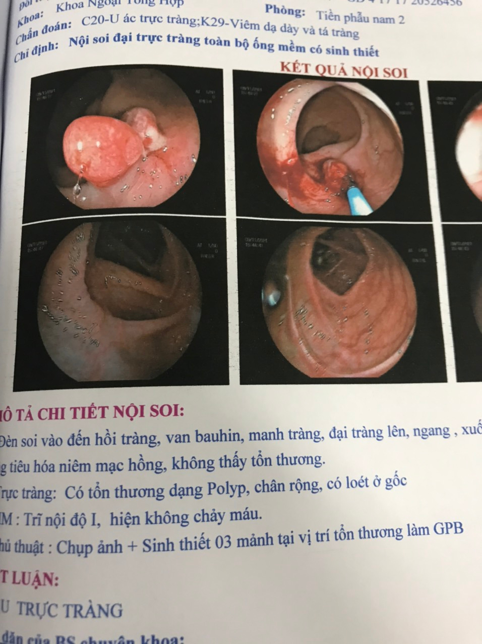 Hình ảnh nội soi đại tràng phát hiện được polyp