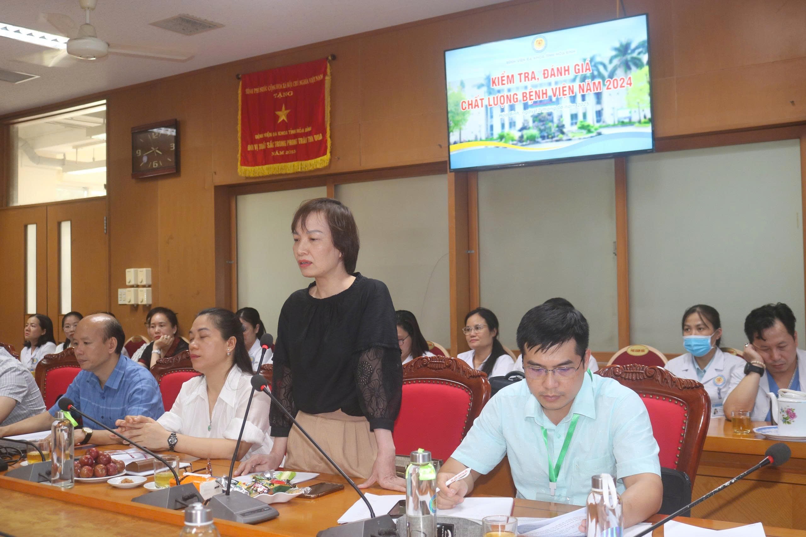 Báo cáo của bệnh viện tại buổi làm việc đã nêu bật các kết quả nổi bật trong công tác khám chữa bệnh trong năm 2024, đồng thời chỉ rõ một số khó khăn và hạn chế, cùng với phương hướng khắc phục trong thời gian tới. BS.CKII Bùi Thu Hằng, Giám đốc Sở Y tế, Trưởng đoàn công tác, đánh giá cao những nỗ lực không ngừng của Bệnh viện Đa khoa tỉnh Hòa Bình. Tuy nhiên, trong bối cảnh phát triển xã hội và nhu cầu của người dân ngày càng cao, Bệnh viện Đa khoa tỉnh cần tiếp tục cố gắng nhiều hơn nữa, cải tiến và nâng cao tính chuyên nghiệp, đặc biệt chú trọng vào các khâu đầu tiên như Khoa Khám bệnh, Hồi sức cấp cứu, Hồi sức tích cực, công tác chăm sóc khách hàng và ứng dụng công nghệ thông tin. Đồng chí Trưởng đoàn công tác mong rằng trong thời gian tới, Bệnh viện Đa khoa tỉnh sẽ tiếp tục phát huy những thành tựu đã đạt được, khắc phục các tồn tại và khó khăn, từ đó nâng cao chất lượng khám chữa bệnh, đáp ứng tốt hơn nhu cầu chăm sóc sức khỏe của nhân dân.