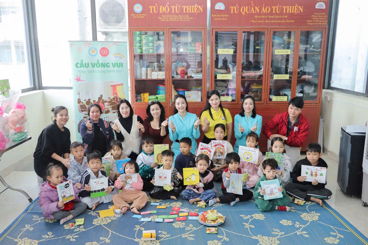 Bên cạnh đó, Phòng Công tác xã hội duy trì đều đặn hoạt động đọc truyện, tặng quà cho các em nhỏ điều trị nội trú vào thứ Năm hằng tuần, đặc biệt là các bệnh nhi mắc bệnh tan máu bẩm sinh (thalassemia). Thông qua những câu chuyện, món quà nhỏ và sự quan tâm chân thành, chương trình đã góp phần xoa dịu nỗi đau bệnh tật, mang đến niềm vui và hy vọng cho các em. Phòng Công tác xã hội cũng phối hợp với Câu lạc bộ Thiện nguyện Hòa Bình và các nhà hảo tâm trao tặng gấu bông, sữa và tiền mặt cho bệnh nhi; chương trình dự kiến tiếp tục tổ chức 02 lần/tháng.