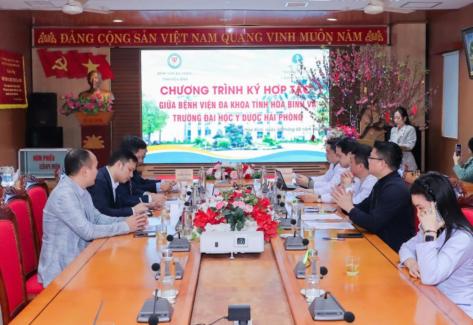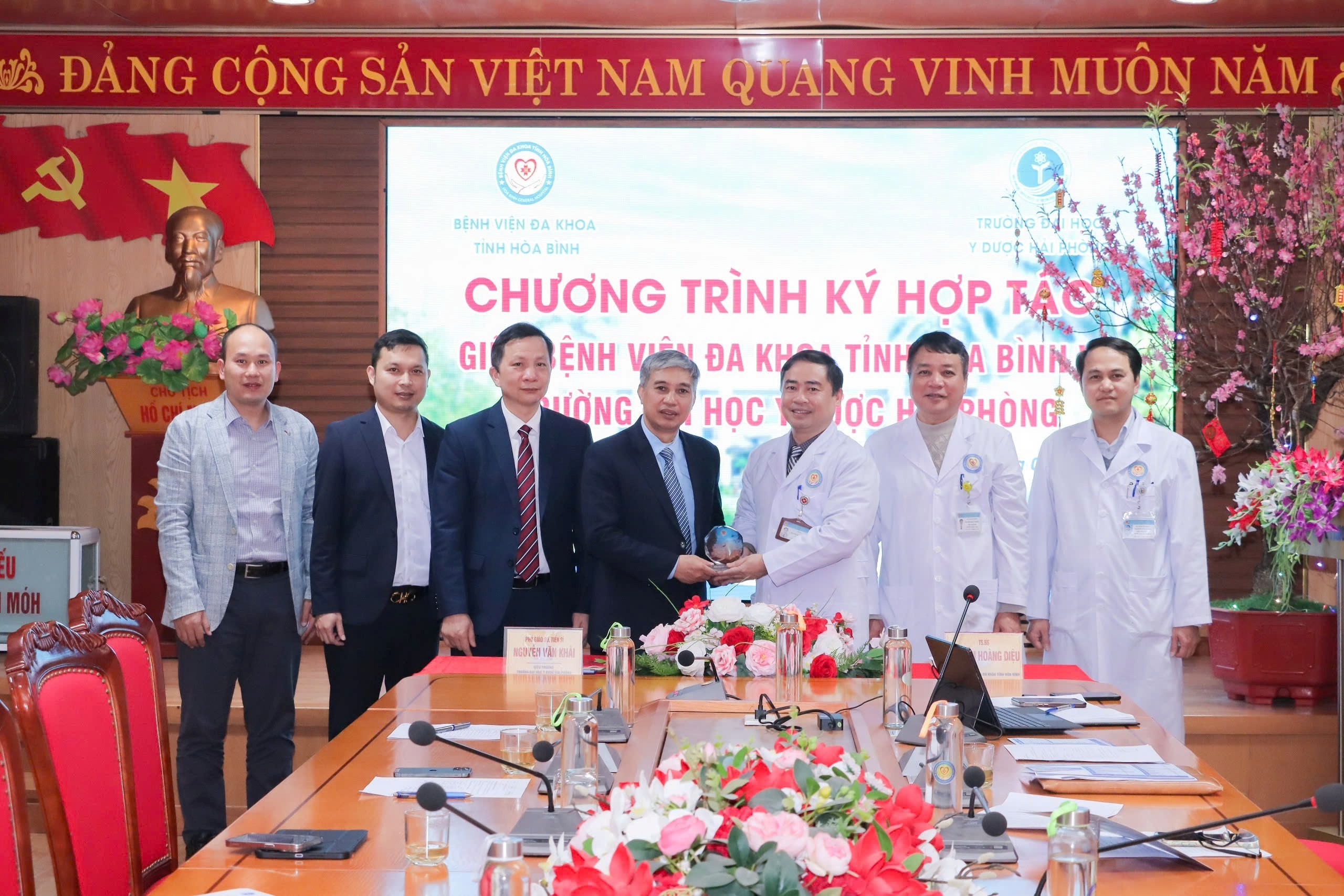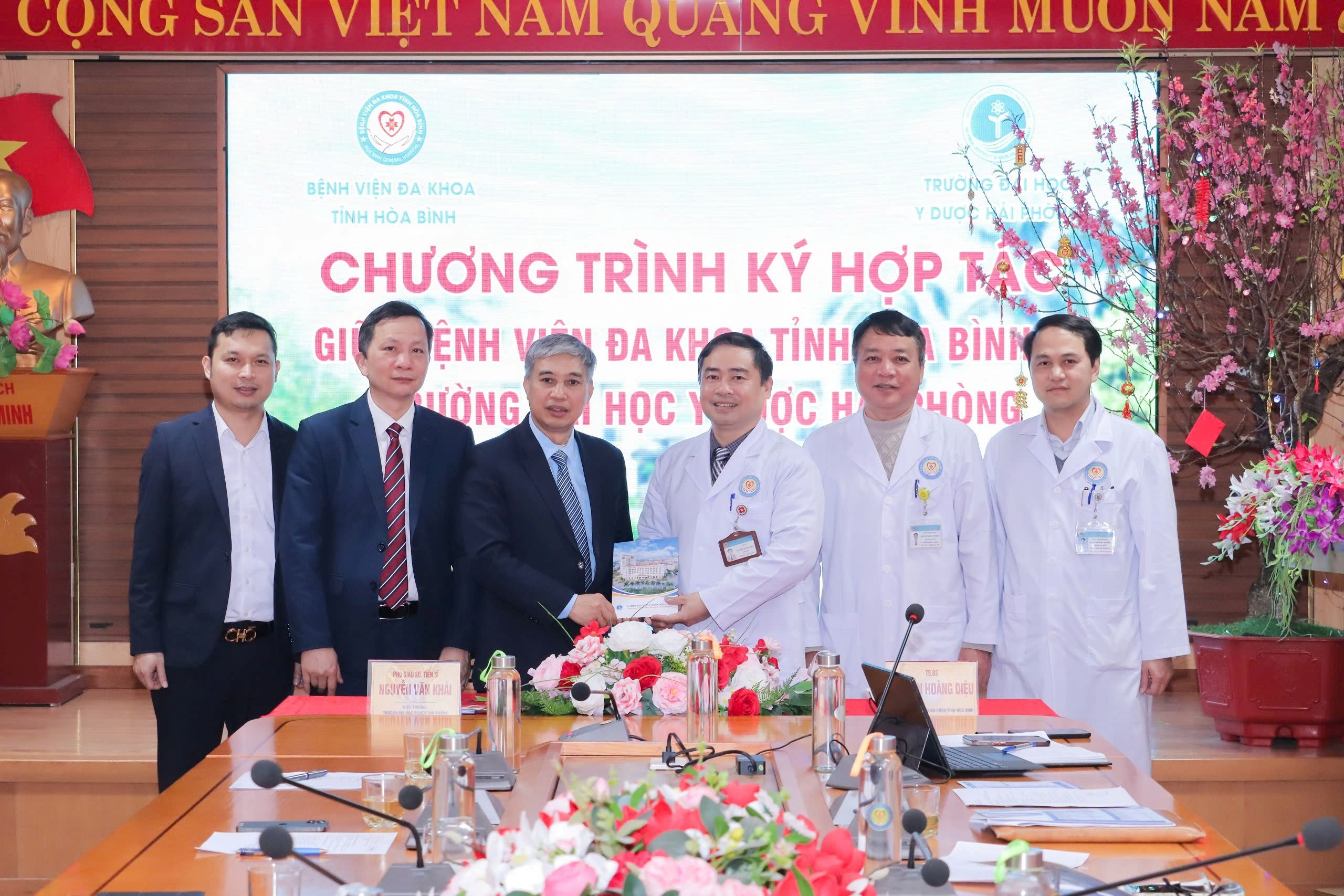 Ngày 11/2, tại Bệnh viện Đa khoa tỉnh Hòa Bình đã diễn ra Lễ ký kết hợp tác giữa Bệnh viện Đa khoa tỉnh Hòa Bình và Trường Đại học Y Dược Hải Phòng. Tham dự buổi lễ có PGS.TS Nguyễn Văn Khải – Hiệu trưởng Trường Đại học Y Dược Hải Phòng, TS.BS Nguyễn Hoàng Diệu – Giám đốc Bệnh viện Đa khoa tỉnh Hòa Bình cùng đại diện lãnh đạo, cán bộ hai đơn vị.