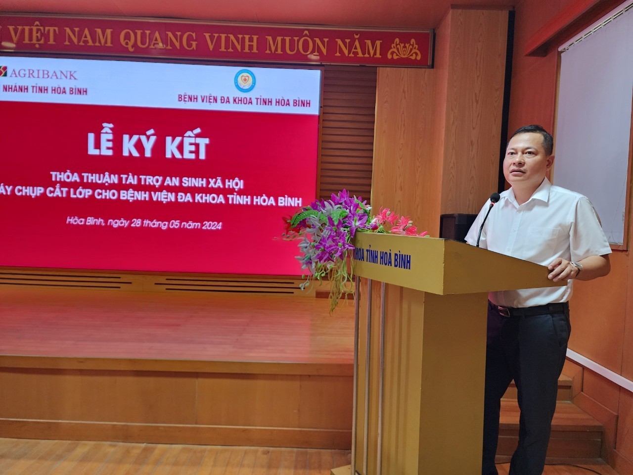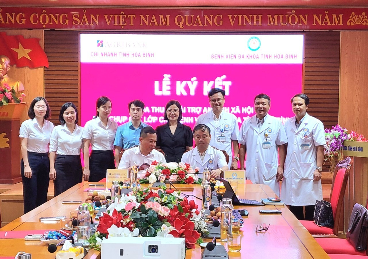 Trước thực tế cấp thiết của Bệnh viện cũng như nhu cầu tăng cao của người bệnh, Ngân hàng Nông nghiệp và Phát triển nông thôn chi nhánh tỉnh Hòa Bình đã tài trợ cho Bệnh viện Đa khoa tỉnh nguồn kinh phí 7 tỉ đồng để Bệnh viện đầu tư mua sắm hệ thống máy chụp Cắt lớp vi tính. Nguồn tài trợ được Agribank chi nhánh tỉnh Hòa Bình trích từ Quỹ an sinh xã hội của đơn vị.