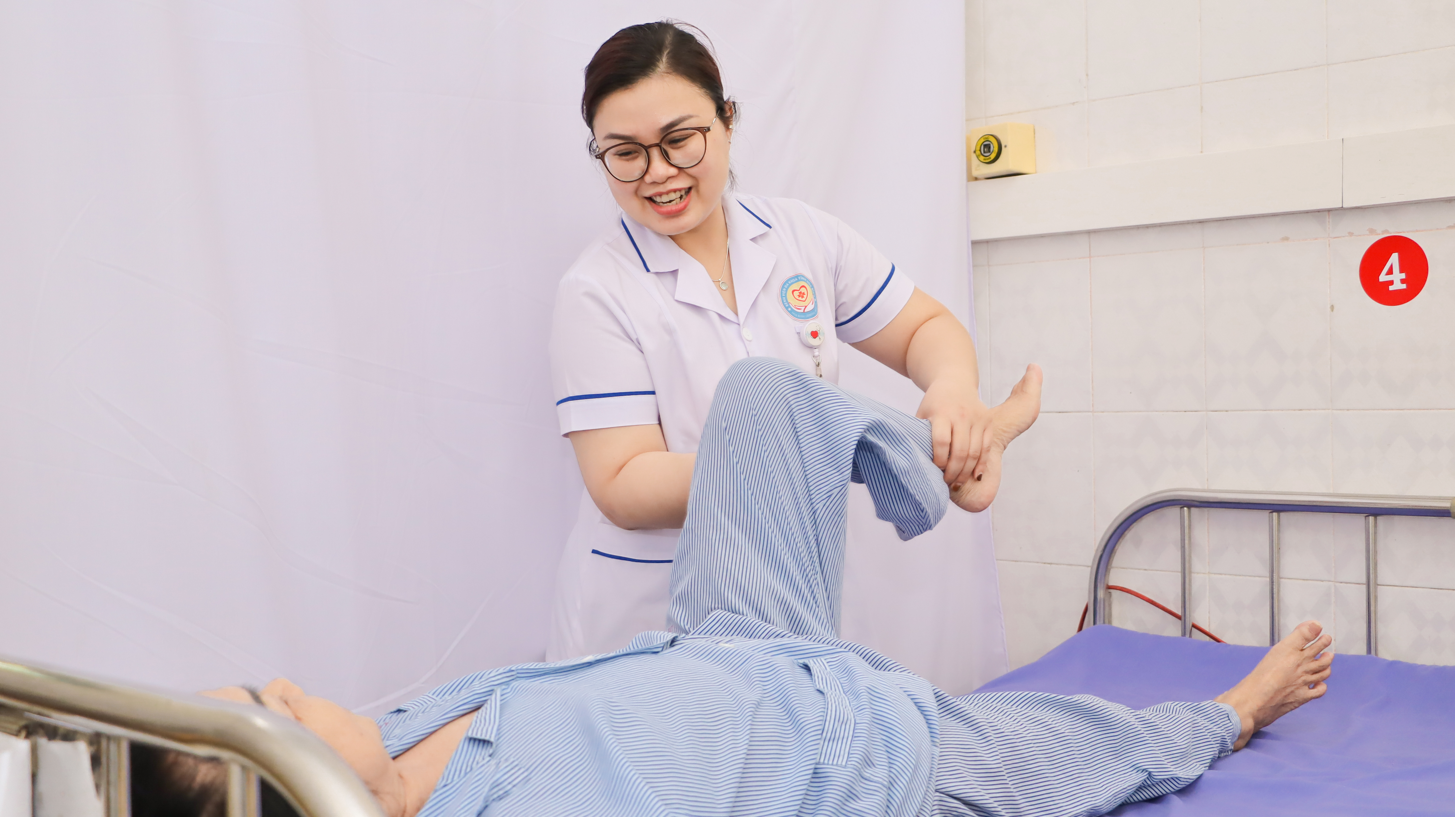 Hình ảnh kỹ thuật viên tập vận động cho bệnh nhân