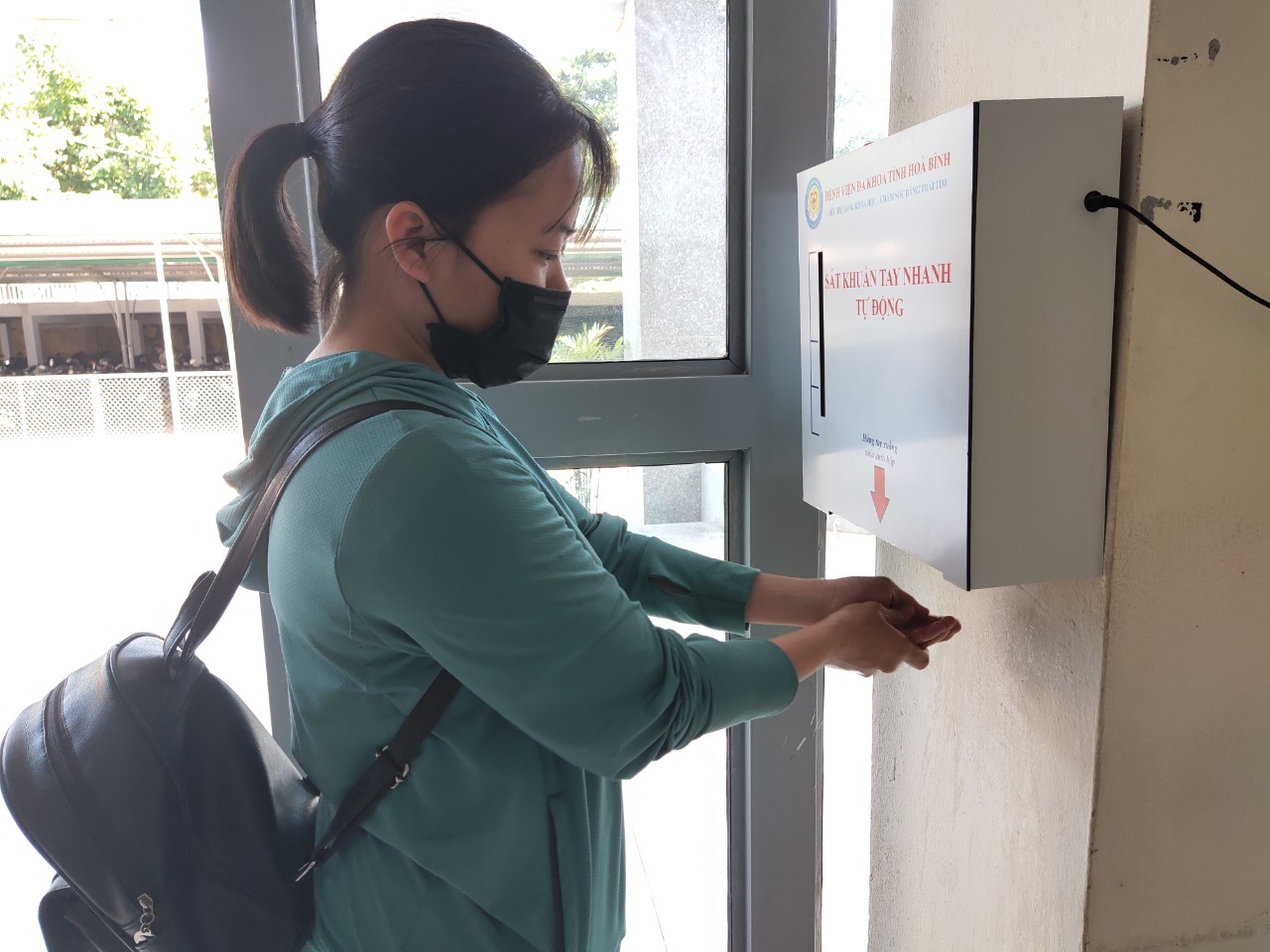Nghĩ là làm. Nhóm nghiên cứu gồm cách cán bộ thuộc Phòng Công nghệ thông tin bắt tay vào việc. Từ thiết bị đến hình dáng, kích thước, màu sắc. Trong vòng nửa tháng miệt mài tìm kiếm, nghiên cứu và thử nghiệm, một chiếc máy sát khuẩn tay tự động chính thức được ứng dụng tại Bệnh viện Đa khoa tỉnh Hoà Bình vào giữa tháng 4/2021.