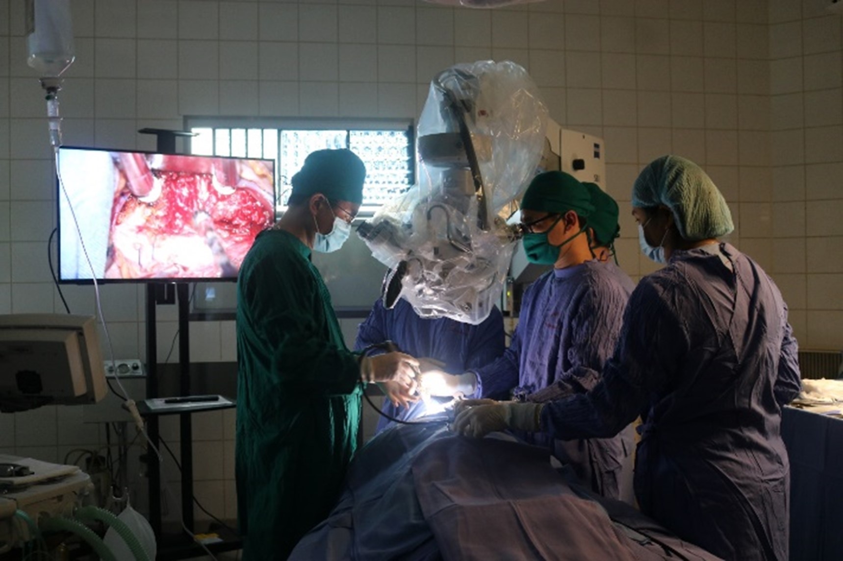 Các chuyên gia về lĩnh vực thần kinh, Bệnh viện Đa khoa tỉnh phẫu thuật cột sống cho người bệnh dưới hướng dẫn của kính hiển vi phẫu thuật