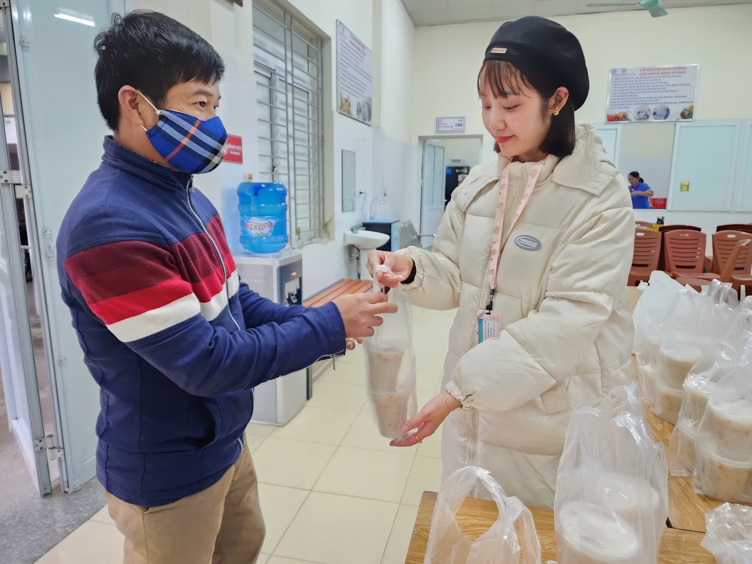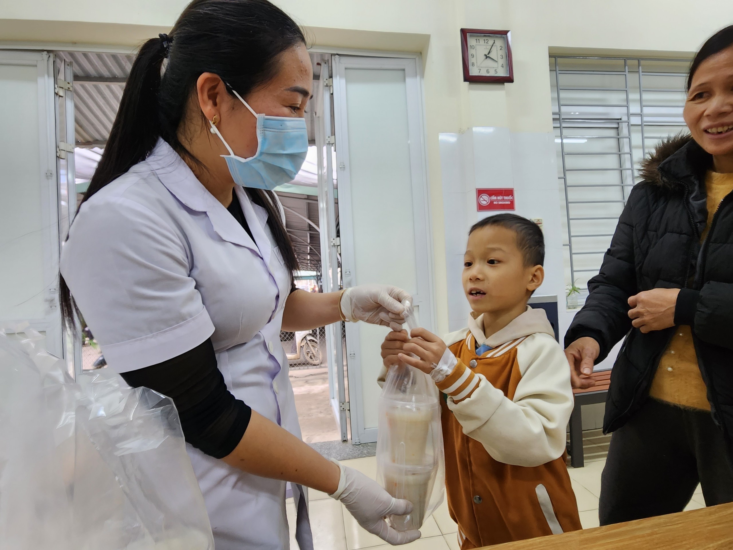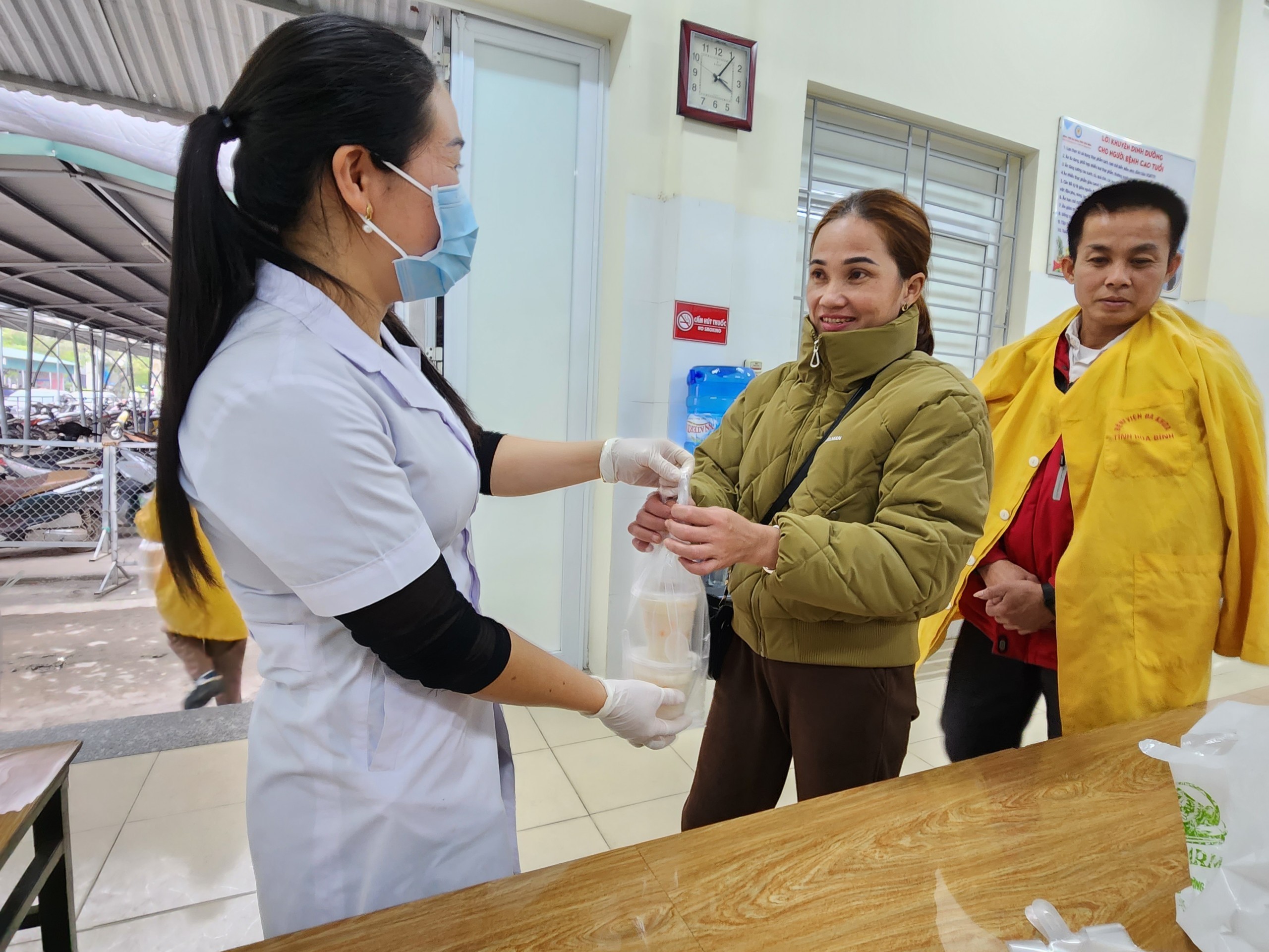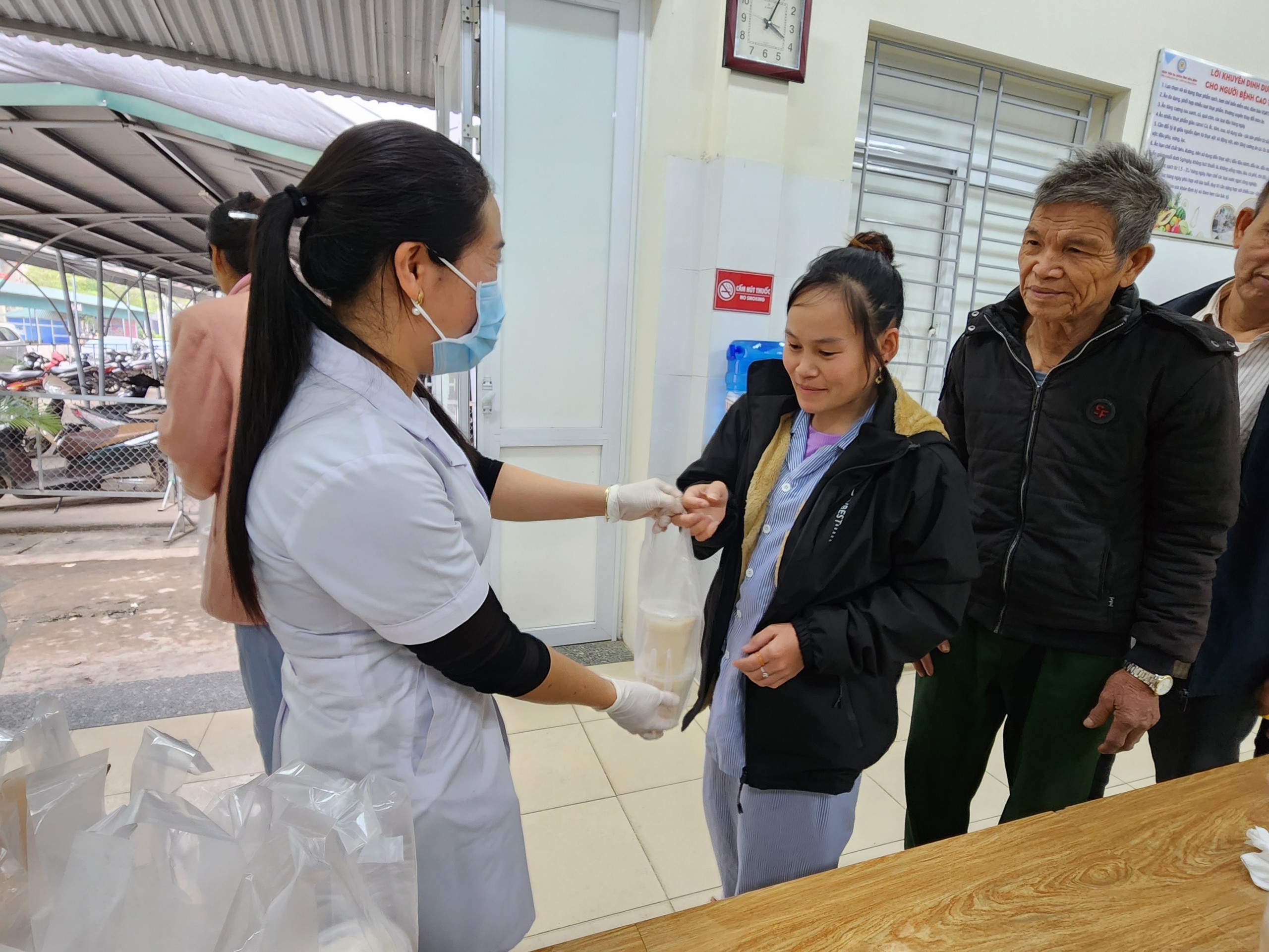 Rất đông bệnh nhân và người nhà đến nhận cháo