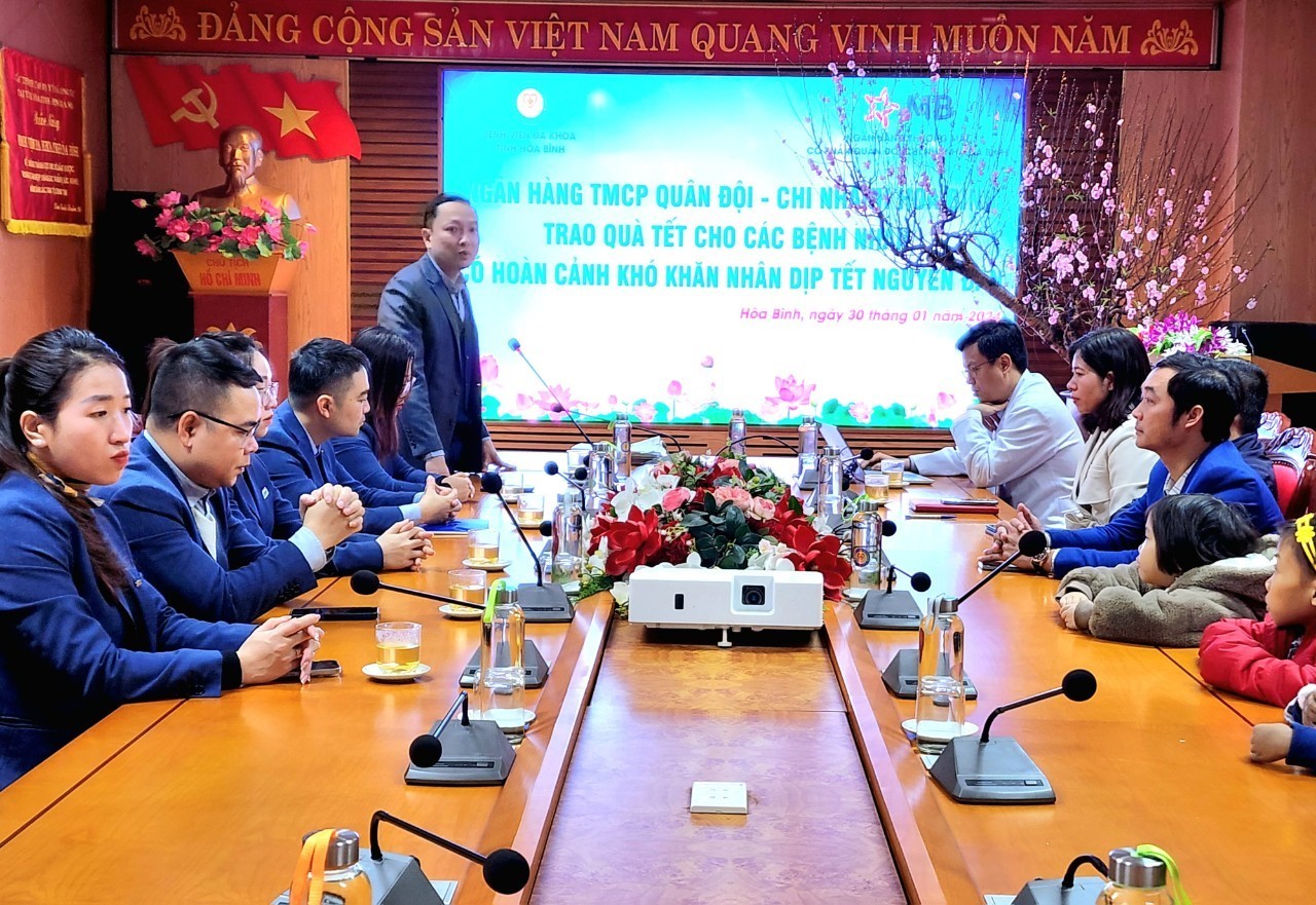 Ngày 30/01/2024, tại Hội trường Bệnh viện Đa khoa tỉnh Hoà Bình, Ngân hàng TMCP Quân đội, chi nhánh Hoà Bình đã tiến hành trao quà cho bệnh nhân có hoàn cảnh khó khăn đang điều trị nội trú tại Bệnh viện Đa khoa tỉnh. Ông Trần Anh Tuấn, Giám đốc Ngân hàng TMCP Quân đội, chi nhánh Hoà Bình cùng các thành viên đoàn tham dự chuơng trình. Tiếp đoàn có TS.BS Trương Như Hiển, Phó Giám đốc Bệnh viện cùng lãnh đạo các khoa phòng.