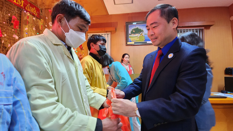 Tới thăm các bệnh nhân, đồng chí Nguyễn Mạnh Cường và các thành viên đoàn dành những lời hỏi thăm ân cần và chúc người bệnh nhanh được về ăn tết cùng gia đình