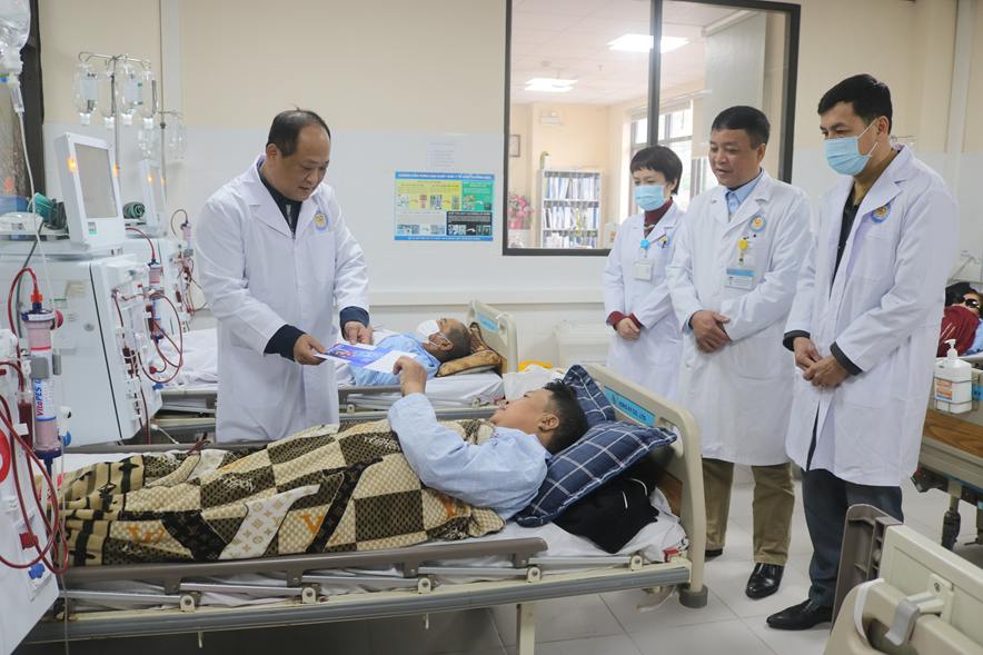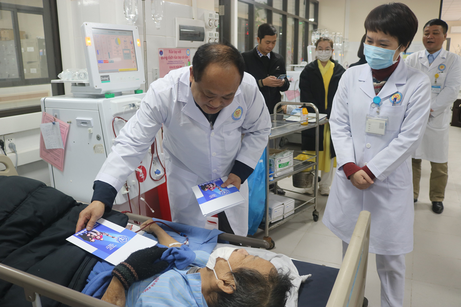 30 suất quà ý nghĩa được đồng chí Nguyễn Mạnh Cường cùng các thành viên đoàn trao tận tay các bệnh nhân chạy thận nhân tạo tại Bệnh viện Đa khoa tỉnh