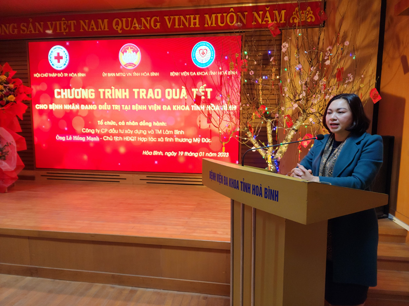 Ngày 19/01/2023 (tức 28 tháng Chạp), Đoàn công tác Ủy ban Mặt trận tổ quốc Việt Nam tỉnh do đồng chí Đặng Bích Ngọc, Tỉnh ủy viên, Phó Chủ tịch TT Ủy Ban MTTQ VN tỉnh làm Trưởng đoàn đã đến thăm và tặng quà Bệnh nhân đang điều trị tại Bệnh viện Đa khoa tỉnh Hòa Bình. Tham dự đoàn còn có Hội Chữ thập đỏ thành phố Hòa Bình và các cá nhân, tổ chức thiện nguyện. Về phía Bệnh viện Đa khoa tỉnh có TS.BS Nguyễn Hoàng Diệu, Giám đốc Bệnh viện cùng đại diện các khoa, phòng và đông đảo bệnh nhân, người nhà tham dự.