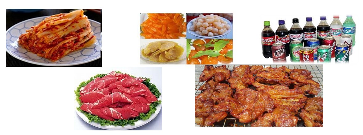 - Thực phẩm tẩm ướp nhiều, thịt đỏ, các món thịt nướng, thịt hun khói,các món xào, rán,quay.