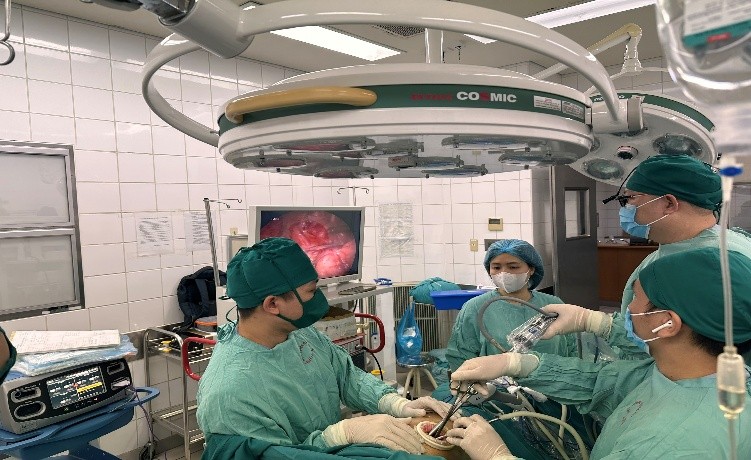 Mới đây, các bác sĩ Khoa Ngoại Tổng hợp đã thực hiện thành công phẫu thuật nội soi lồng ngực cắt kén khí phổi cho bệnh nhân nam 26 tuổi có tiền sử tràn khí màng phổi tái diễn nhiều lần. Sau phẫu thuật, bệnh nhân hồi phục tốt, dẫn lưu được rút sớm và xuất viện sau 7 ngày điều trị. Sau 1 tháng tái khám, bệnh nhân ổn định, không ghi nhận tái phát tràn khí màng phổi, sinh hoạt và lao động bình thường.
