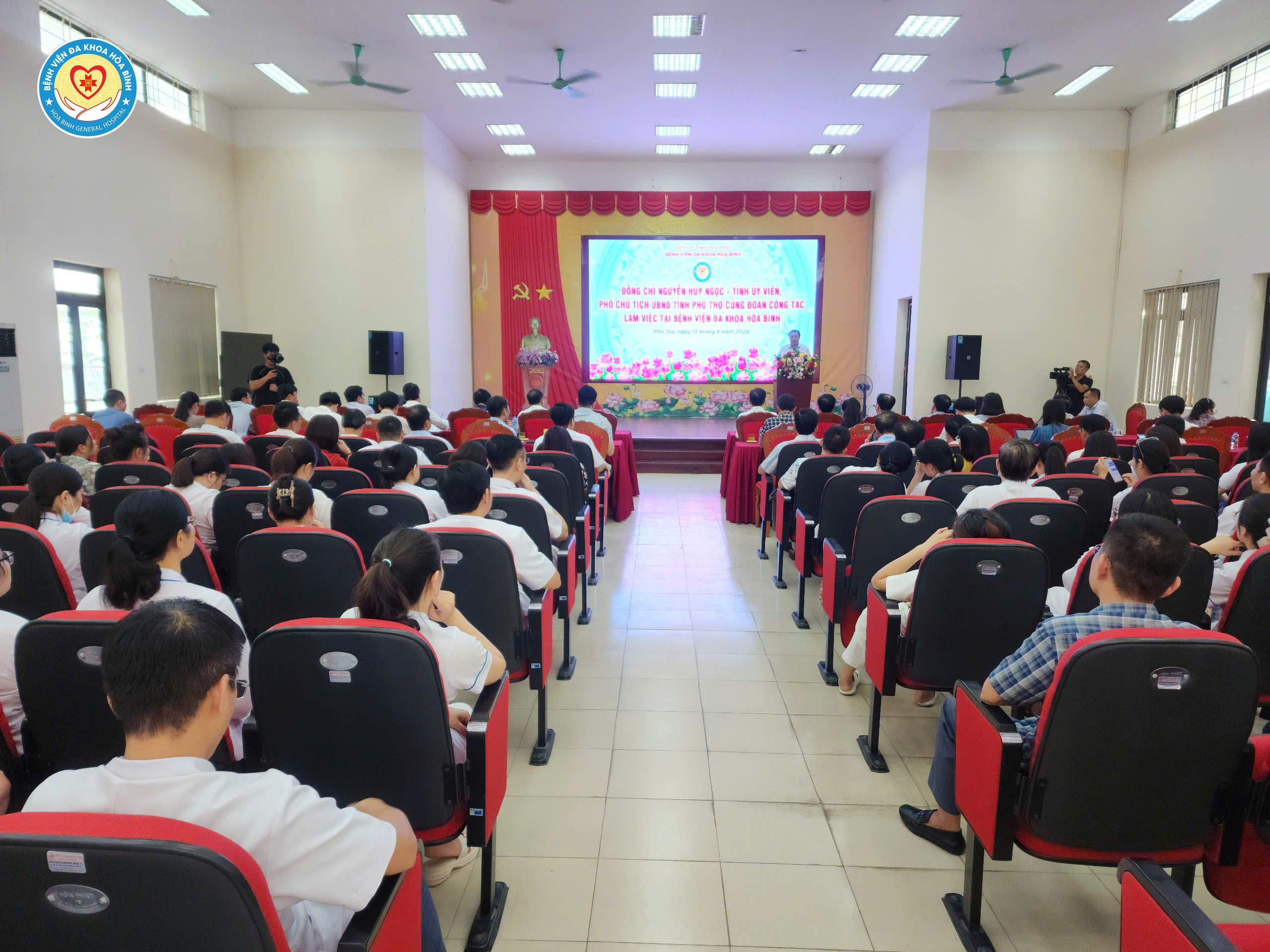 Ngày 13/8, đoàn công tác của UBND tỉnh do đồng chí Nguyễn Huy Ngọc, Tỉnh ủy viên, Phó Chủ tịch UBND tỉnh làm Trưởng đoàn đã đến thăm và làm việc tại Bệnh viện Đa khoa Hòa Bình.