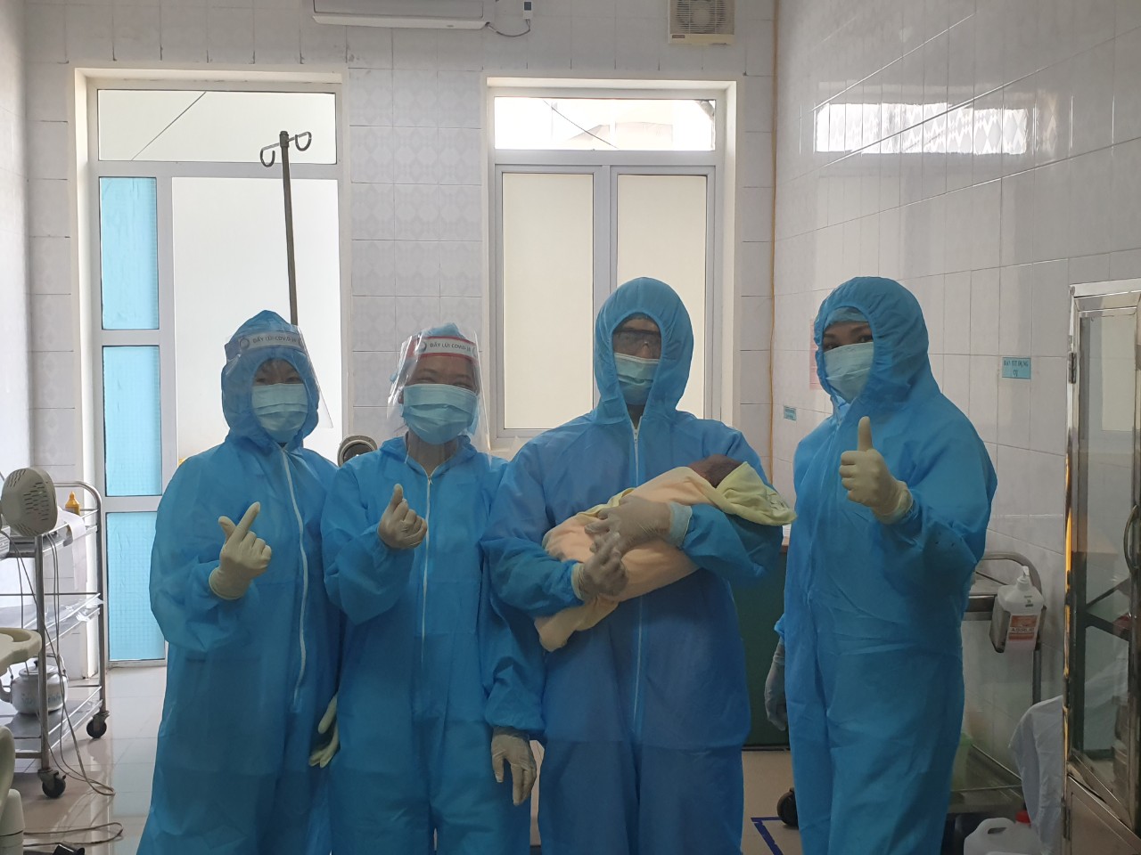 Kíp bác sĩ khoa Sản phụ vui mừng đón em bé tại khu cách ly chào đời mạnh khoẻ