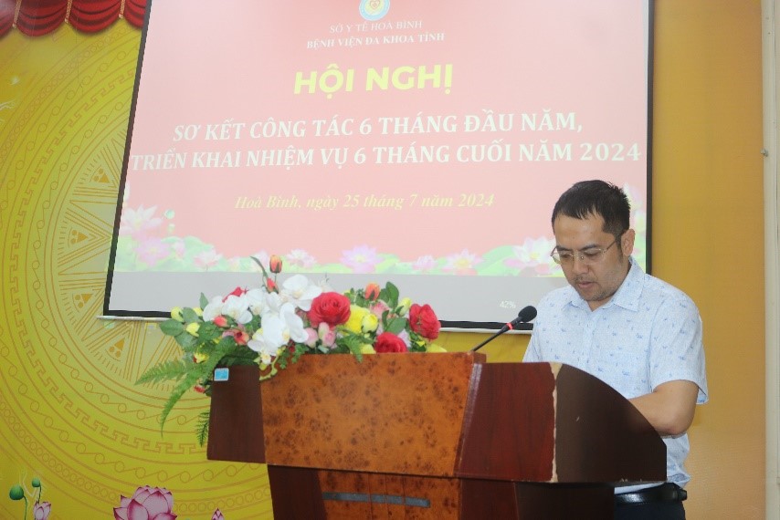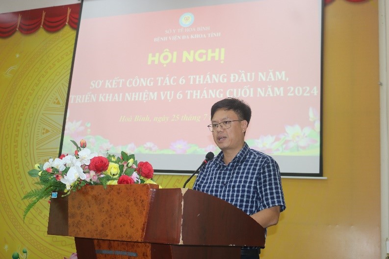 Ngày 25/7, Bệnh viện Đa khoa tỉnh Hoà Bình tổ chức Hội nghị Sơ kết công tác 6 tháng đầu năm và triển khai nhiệm vụ 6 tháng cuối năm 2024. TS.BS Nguyễn Hoàng Diệu, Giám đốc bệnh viện dự và chủ trì Hội nghị.