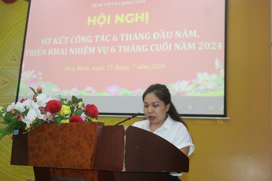 Với tinh thần xây dựng, đoàn kết và nhất trí cao, các đại biểu dự Hội nghị đã sôi nổi tham gia ý kiến đóng góp xây dựng, hoàn chỉnh báo cáo; đề xuất bổ sung một số giải pháp nhằm hoàn thành tốt nhiệm vụ 6 tháng cuối năm 2024. Hội nghị đã được nghe các ý kiến đóng góp của các đại biểu tham dự xoay quanh các nội dung: Vai trò việc quản lý thiết bị y tế vật tư, hoá chất xét nghiệm tại Bệnh viện Đa khoa tỉnh, khoa Ung bướu nâng cao chất lượng công tác phát triển chuyên môn kỹ thuật, khoa Dược cung ứng quản lý và sử dụng thuốc hiệu quả và an toàn người bệnh.