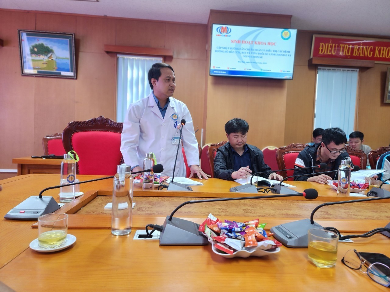 Ngày 21/11, Bệnh viện Đa khoa tỉnh Hoà Bình tổ chức Chương trình sinh hoạt khoa học với chủ đề: “Cập nhật hướng dẫn chẩn đoán và điều trị các bệnh lý đường hô hấp Cúm, RSV và viêm phổi do S.Pneumoniae và M. Pneumoniae”. Tham dự có BS.CKII Trần Hoàng Dương, Phó Giám đốc Bệnh viện, lãnh đạo các khoa, phòng cùng hơn 50 học viên đến từ các khoa lâm sàng Bệnh viện Đa khoa tỉnh và TTYT các huyện thành phố. Báo cáo viên tại chương trình là các chuyên gia đầu ngành đến từ Bệnh viện Nhi Trung ương. Gồm: TS.BS Đỗ Thiện Hải, Phó Giám đốc Trung tâm nhiệt đới và TS Hoàng Thị Bích Ngọc, Trưởng khoa Vi sinh.