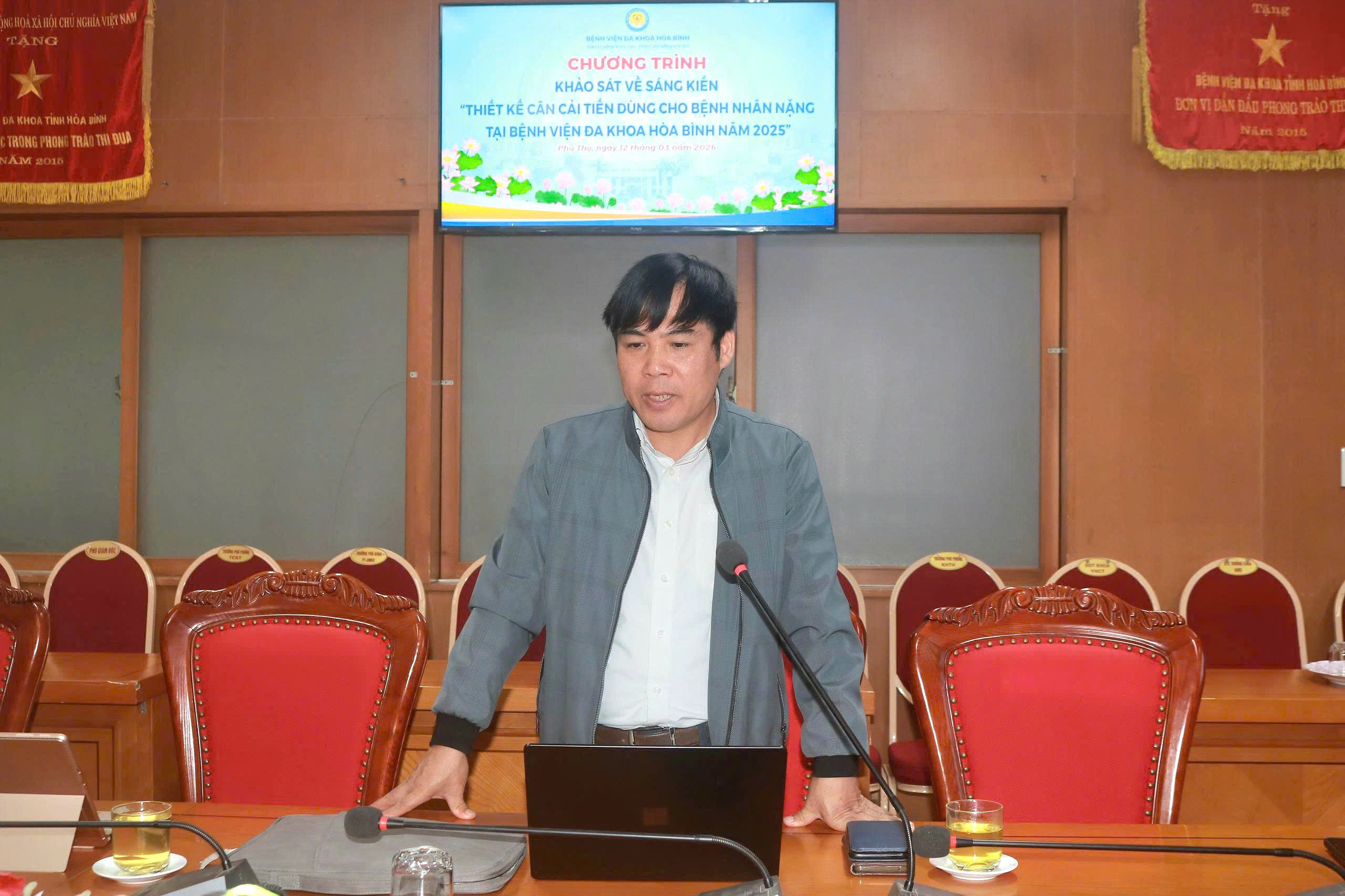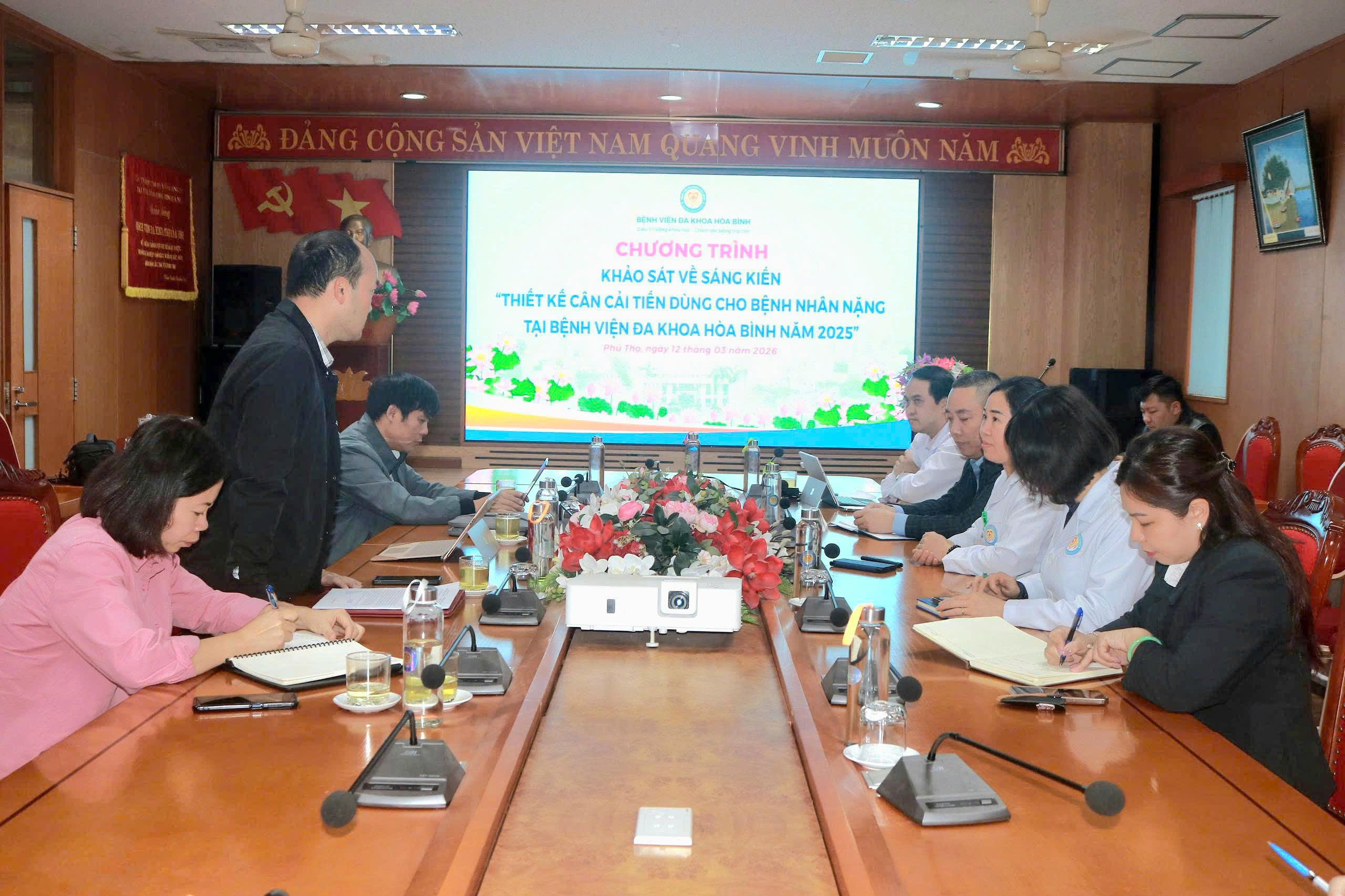 Ngày 12/3, Đoàn công tác của Sở Khoa học và Công nghệ tỉnh Phú Thọ do đồng chí Nguyễn Bình Khiêm – Phó Giám đốc Sở KH&CN làm Trưởng đoàn đã đến làm việc và khảo sát thực tế việc triển khai sáng kiến “Thiết kế cân cải tiến dùng cho bệnh nhân nặng tại Bệnh viện Đa khoa Hòa Bình năm 2025”. Tham gia đoàn còn có đồng chí Lê Tiến Dũng – Phó Giám đốc Sở KH&CN cùng các thành viên chuyên môn.