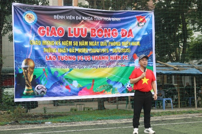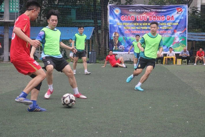 Ngày 27/4, tại sân bóng Hoàng Sơn, đã diễn ra trận giao lưu bóng đá giữa đội Lão tướng FC và đội Thanh niên FC của Bệnh viện Đa khoa tỉnh Hòa Bình. Đây là hoạt động thiết thực của Bệnh viện Đa khoa tỉnh Hòa Bình chào mừng Kỷ niệm 50 năm Ngày Giải phóng miền Nam, thống nhất đất nước (30/4/1975 – 30/4/2025).