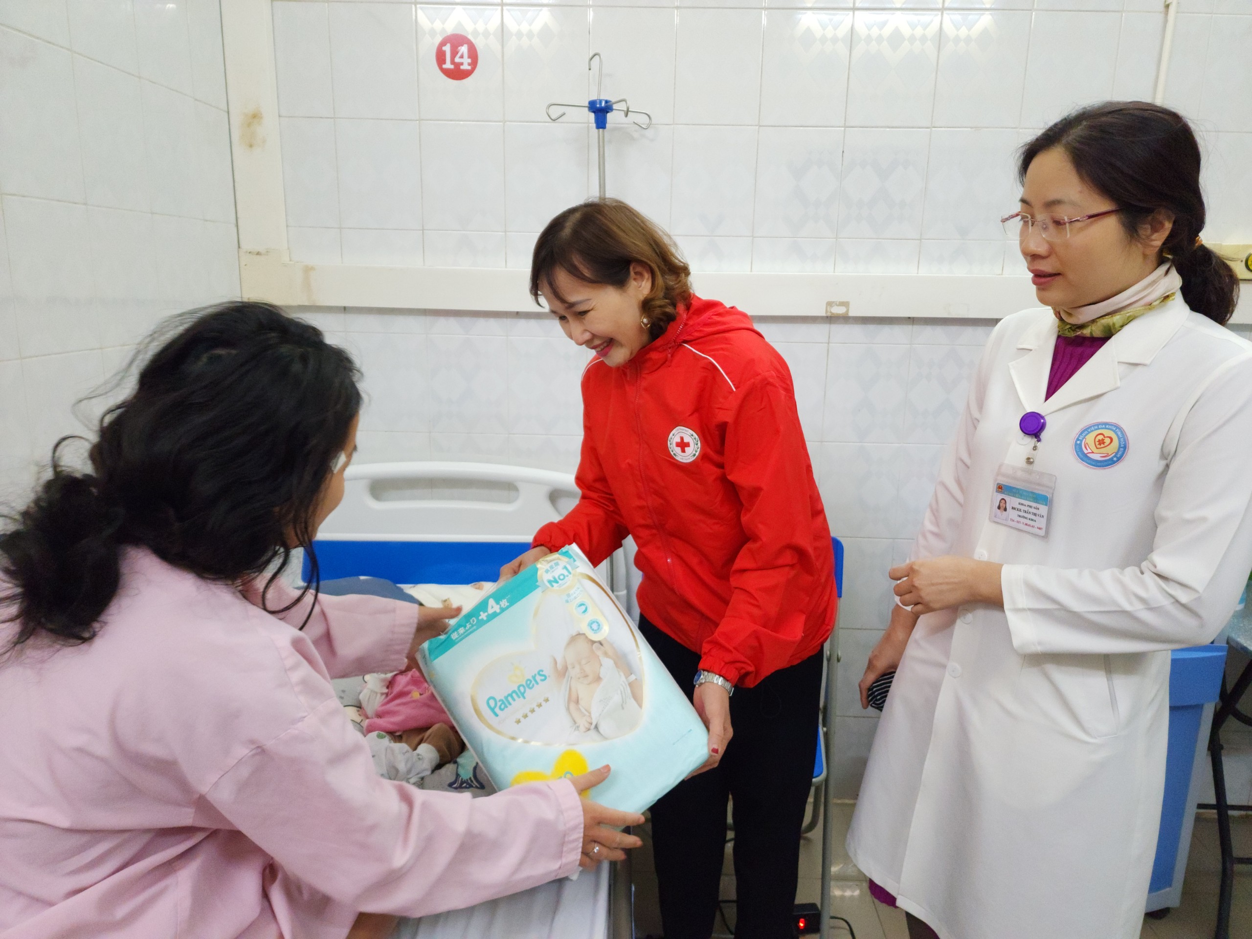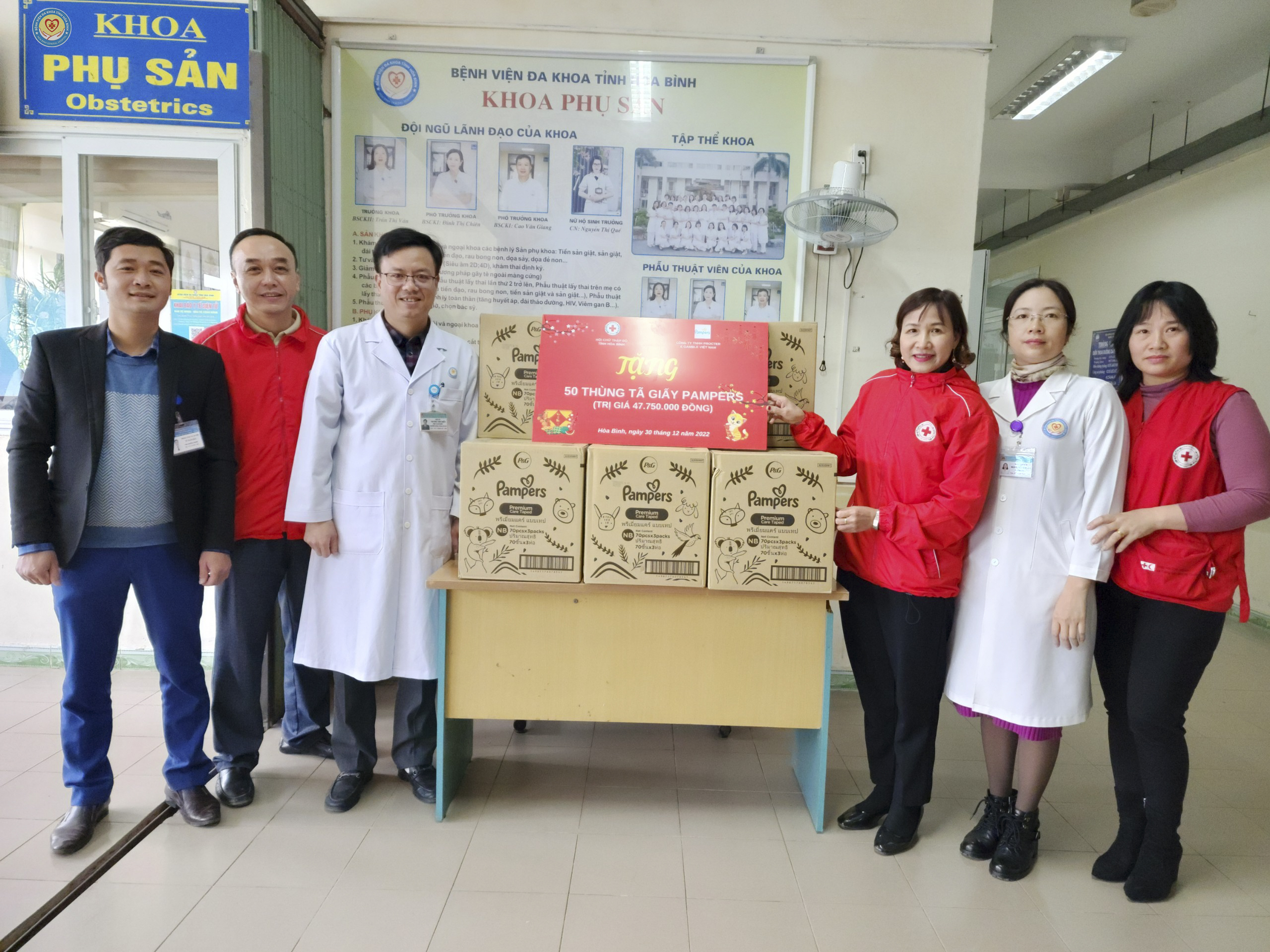 Hiện tại, Bệnh viện Đa khoa tỉnh Hoà Bình đang điều trị trung bình khoảng 110 bệnh nhi nội trú nằm chủ yếu tại hai khoa Nhi và khoa Phụ Sản. Nhằm chia sẻ với bệnh nhi đang điều trị, đồng thời mang không khí tết đến gần hơn với những người bệnh không may mắn phải nằm viện, nhãn hàng Pampers cùng Hội Chữ thập đỏ tỉnh và Bệnh viện Đa khoa tỉnh đã trao quà tặng là 10.500 miếng tã giấy Pampers đến tất cả các bệnh nhi đang điều trị nội trú. Các bệnh nhi nhận quà tại khoa Nhi và khoa Phụ Sản.