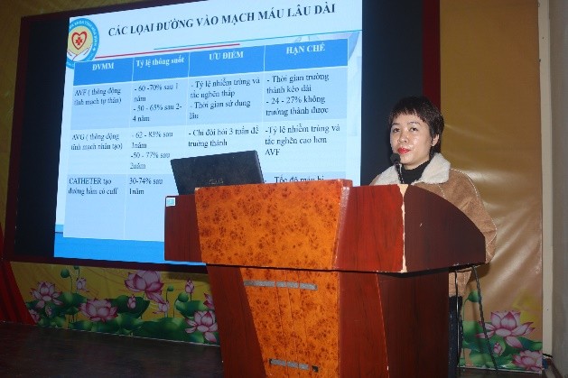 Tại chương trình, BS.CKI Quách Thị Dung, Trưởng khoa Thận nhân tạo Bệnh viện Đa khoa tỉnh Hòa Bình đã có bài nói chuyện nhằm hướng dẫn sử dụng và bảo quản đường vào mạch máu lâu dài với người bệnh chạy thận nhân tạo chu kỳ. Đồng thời, TS.BS Nguyễn Hữu Dũng có chia sẻ và tư vấn với người bệnh về chế độ dinh dưỡng, sinh hoạt, chăm sóc đối với người bệnh chạy thận. Sau bài chia sẻ, TS.BS Nguyễn Hữu Dũng cũng nhiệt tình trả lời các câu hỏi, thắc mắc của bệnh nhân chạy thận nhân tạo đưa ra trong chương trình.