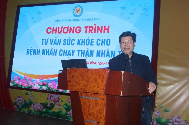 Ngày 19/01, tại Bệnh viện Đa khoa tỉnh Hòa Bình đã diễn ra chương trình Tư vấn sức khỏe cho bệnh nhân chạy thận nhân tạo. Tham dự có Đoàn từ thiện Hà Nội do TS.BS Nguyễn Hữu Dũng, Phó Giám đốc Trung tâm Thận tiết niệu và lọc máu Bệnh viện Bạch Mai, Chủ tịch Hội lọc máu Việt Nam làm cùng các tổ chức và cá nhân có lòng hảo tâm đến từ Hà Nội; TS.BS Nguyễn Hoàng Diệu, Giám đốc Bệnh viện Đa khoa tỉnh Hòa Bình;, lãnh đạo các khoa phòng Bệnh viện Đa khoa tỉnh cùng đông đảo bệnh nhân đang chạy thận chu kỳ tại Bệnh viện Đa khoa tỉnh.