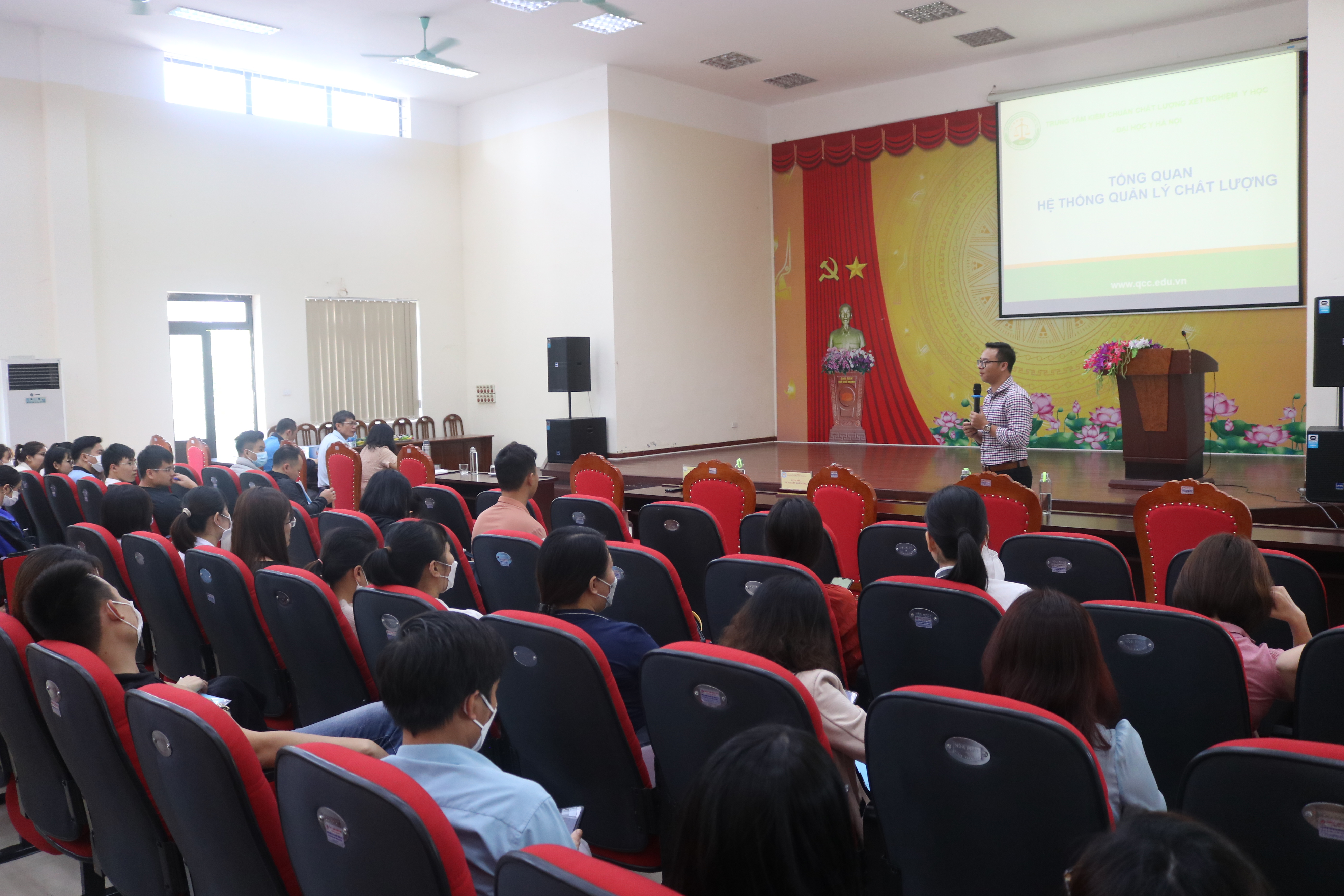 Tại lớp tập huấn, các học viên được cung cấp kiến thức tổng quan về hệ thống quản lý chất lượng và Bộ tiêu chí đánh giá mức chất lượng phòng xét nghiệm y học theo Quyết định số 2429/QĐ-BYT của Bộ Y tế với 12 chương nội dung, gồm: Tổ chức và quản trị phòng xét nghiệm; Quản lý tài liệu và hồ sơ; Quản lý nhân sự; Dịch vụ và Quản lý khách hàng; Quản lý trang thiết bị; Quản lý mua sắm vật tư, hóa chất và sinh phẩm; Quản lý quá trình xét nghiệm; Quản lý thông tin; Cơ sở vật chất và an toàn… Cùng với bài giảng về lý thuyết, các học viên còn tham gia thảo luận nhóm, đóng góp ý kiến, chia sẻ kinh nghiệm, và thực hành xây dựng quy trình.
