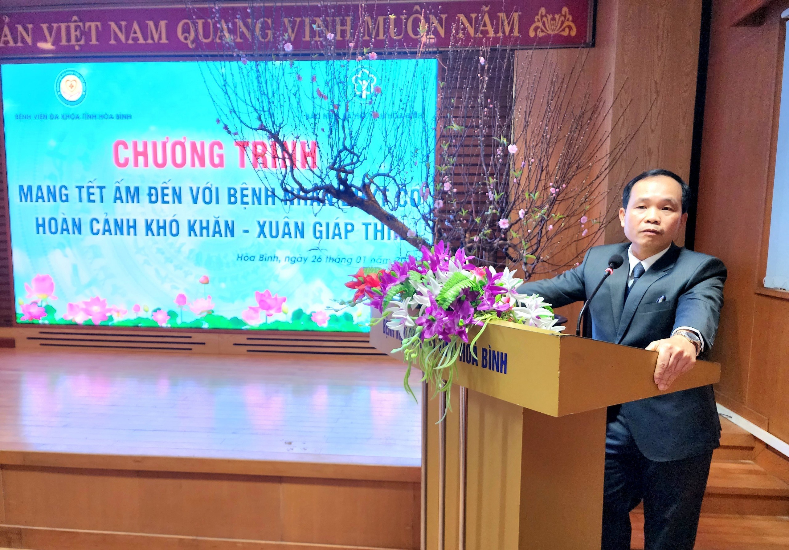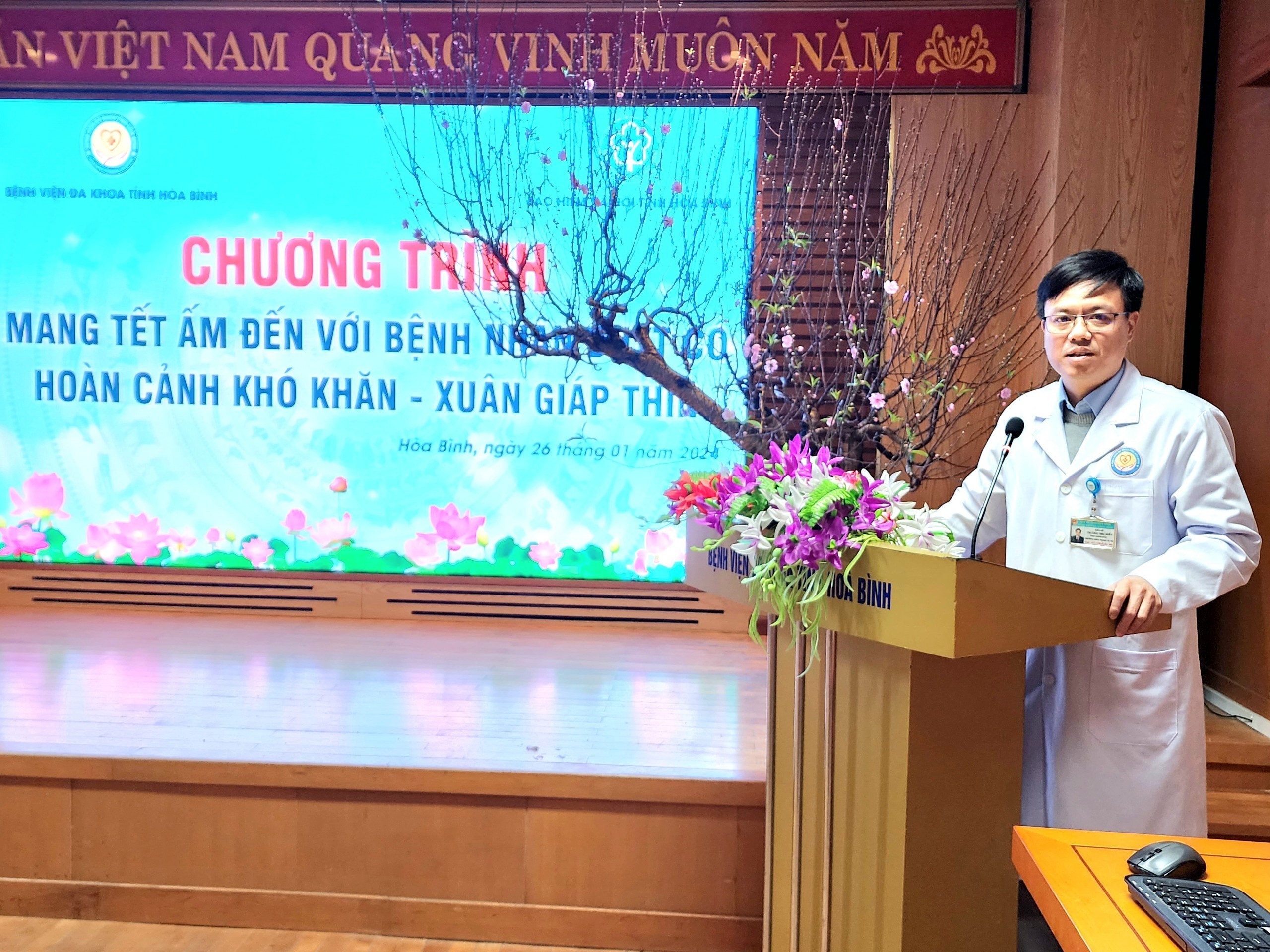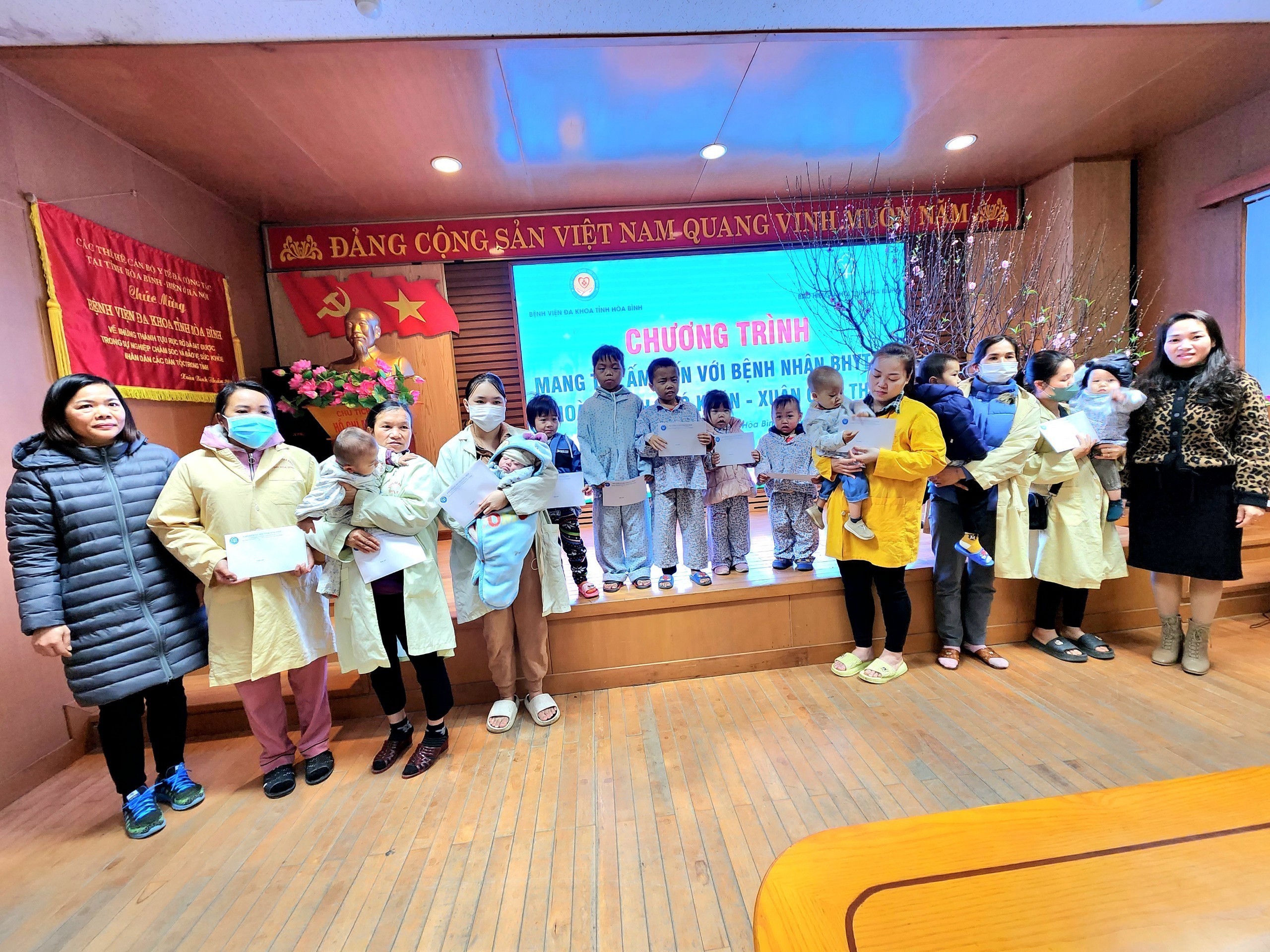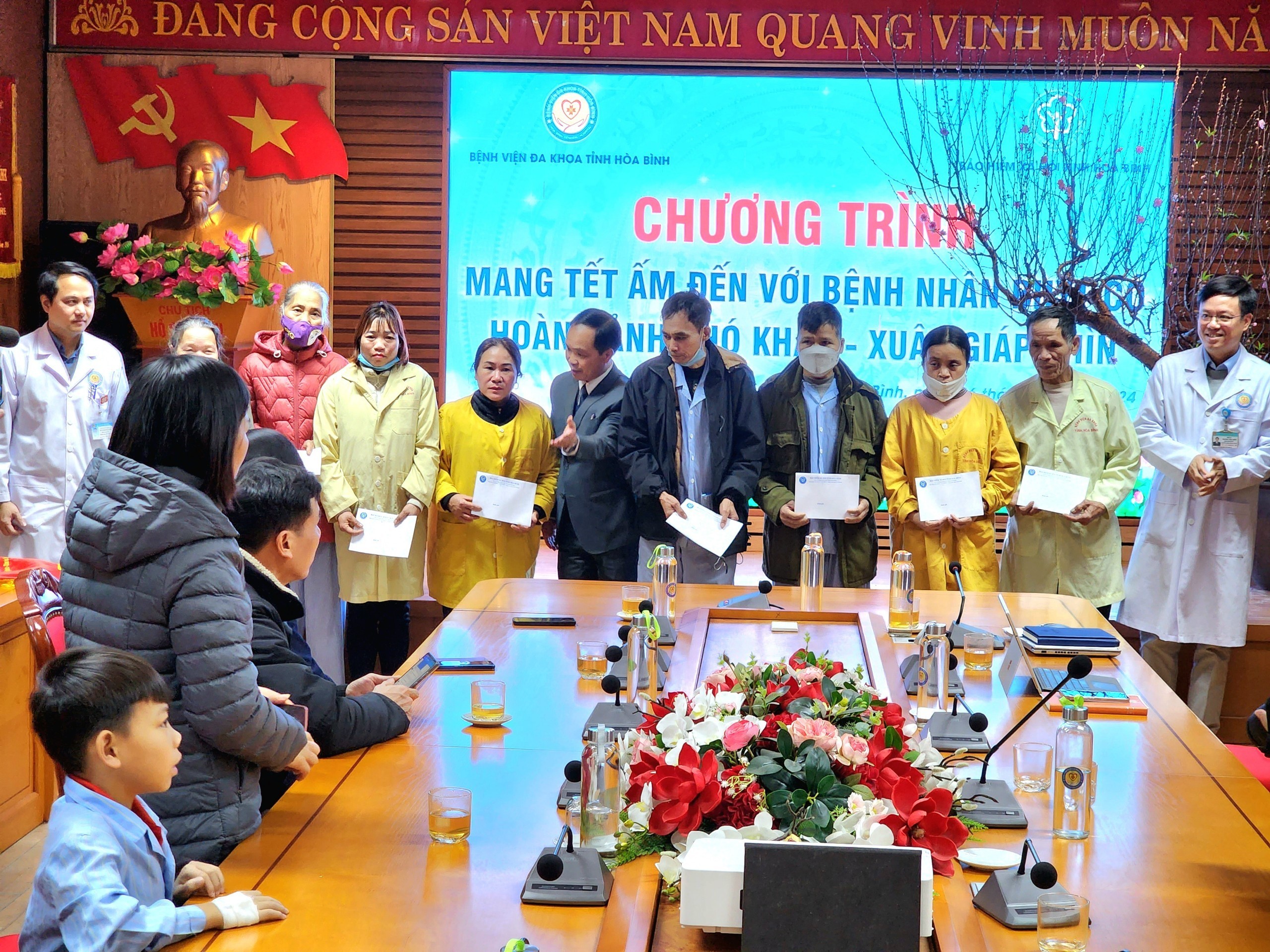 Ngày 26/01, Bệnh viện Đa khoa tỉnh Hoà Bình tổ chức các chương trình tiếp nhận quà tặng nhân dịp Tết Nguyên đán Giáp Thìn cho người bệnh có hoàn cảnh khó khăn đang điều trị tại Bệnh viện.