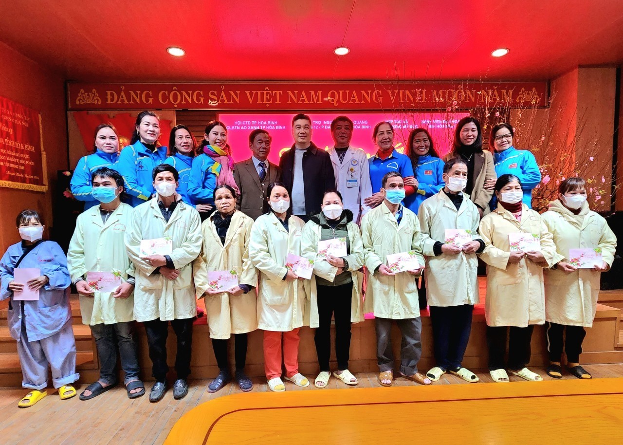 Chiều cùng ngày, Bệnh viện phối hợp với cá nhân các nhà hảo tâm trong và ngoài tỉnh tổ chức chương trình Tết nhân ái trao các suất quà cho bệnh nhân nhân dịp Tết Nguyên đán. Tham dự có gia đình Ông Nguyễn Xuân Quang, cư trú tại tổ 12, phường Dân Chủ, thành phố Hoà Bình; ông Lê Hồng Mạnh, Giám đốc HTX Tình thương, huyện Mỹ Đức; bà Nguyễn Thị Bạch Tuyết, Chủ nhiệm CLB thiện nguyện Áo xanh và các thành viên câu lạc bộ. Đón tiếp các nhà hảo tâm có BS.CKII Nguyễn Quốc Phương, Phó Giám đốc Bệnh viện và lãnh đạo các khoa, phòng.