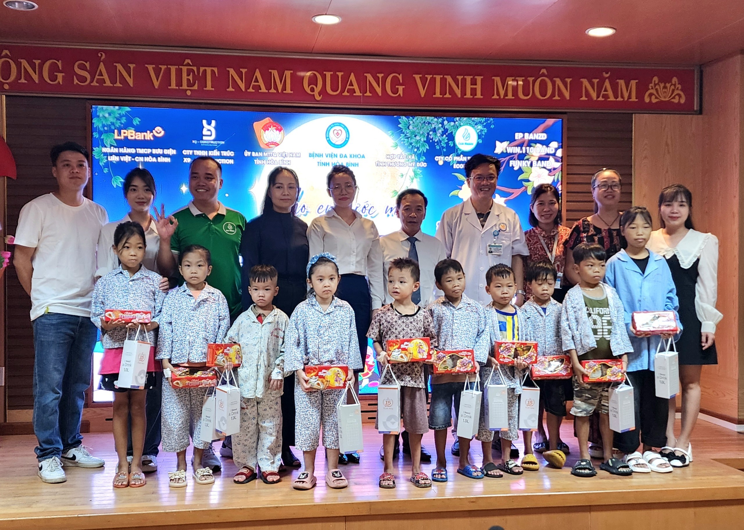 Chiều 28/9, một chương trình Tết trung thu rộn ràng, ấm cúng và ý nghĩa được Bệnh viện Đa khoa tỉnh Hoà Bình phối hợp với các cá nhân, đơn vị đồng hành tổ chức cho bệnh nhi với chủ đề “Vui tết trung thu năm 2023”. Tham dự chương trình có các đồng chí: Trần Đức Trường, Phó Chủ tịch UBMTTQ VN tỉnh, Trần Thị Hoa, Chủ tịch Hội chữ thập đỏ thành phố, Bùi Văn Linh, Giám đốc Công ty Medlatec Hoà Bình, Nguyến Quốc Phương, Phó Giám đốc Bệnh viện Đa khoa tỉnh lãnh đạo các khoa phòng Bệnh viện Đa khoa tỉnh và đông đảo bệnh nhi, người nhà tham dự.