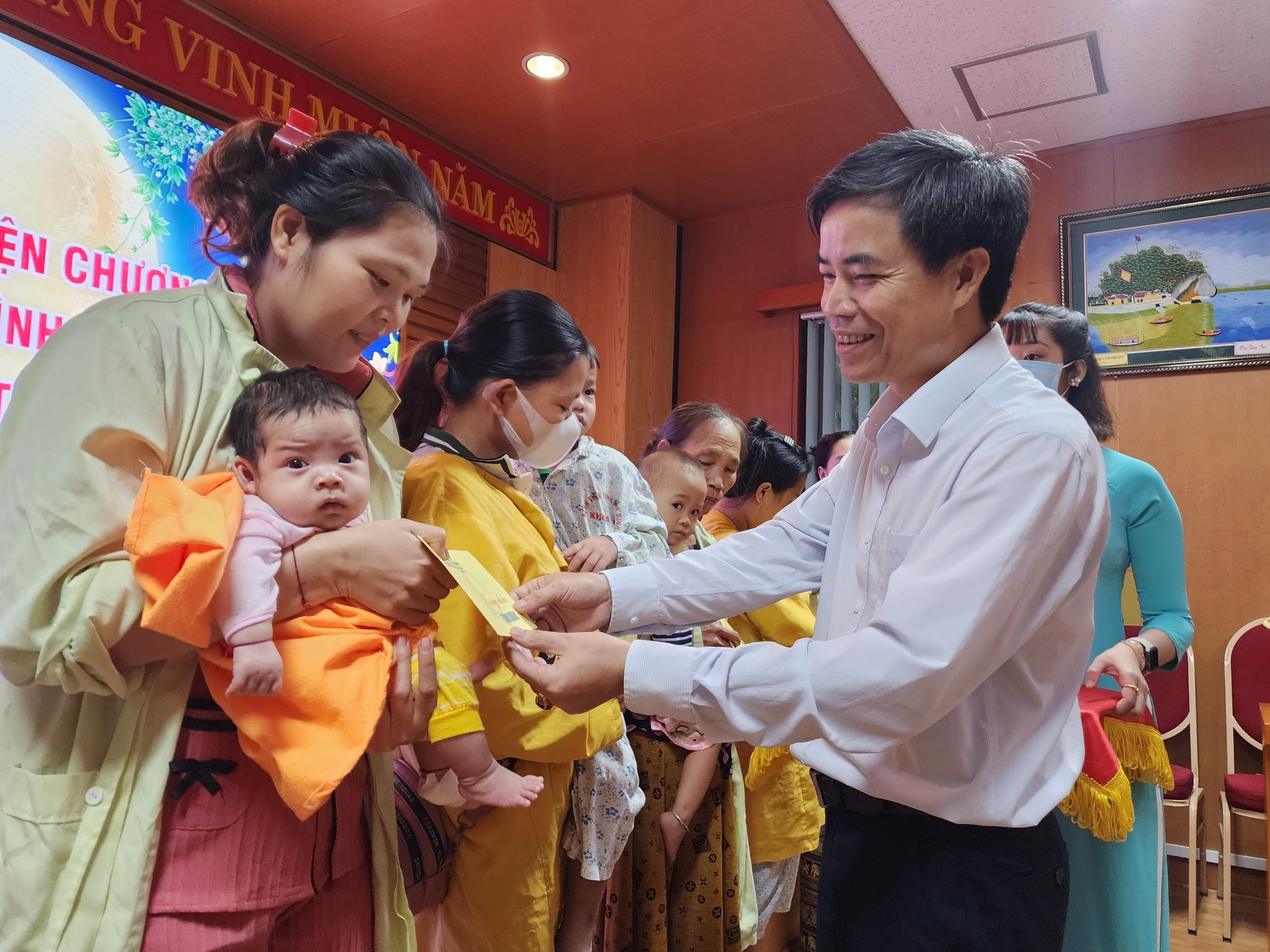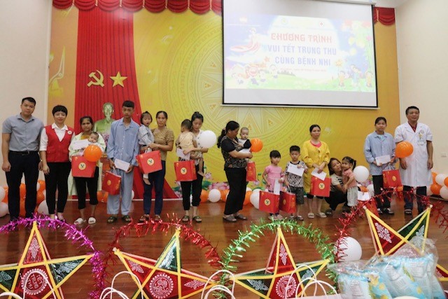 Ban tổ chức trao quà trung thu cho các bệnh nhi đang điều trị nội trú tại Bệnh viện tỉnh